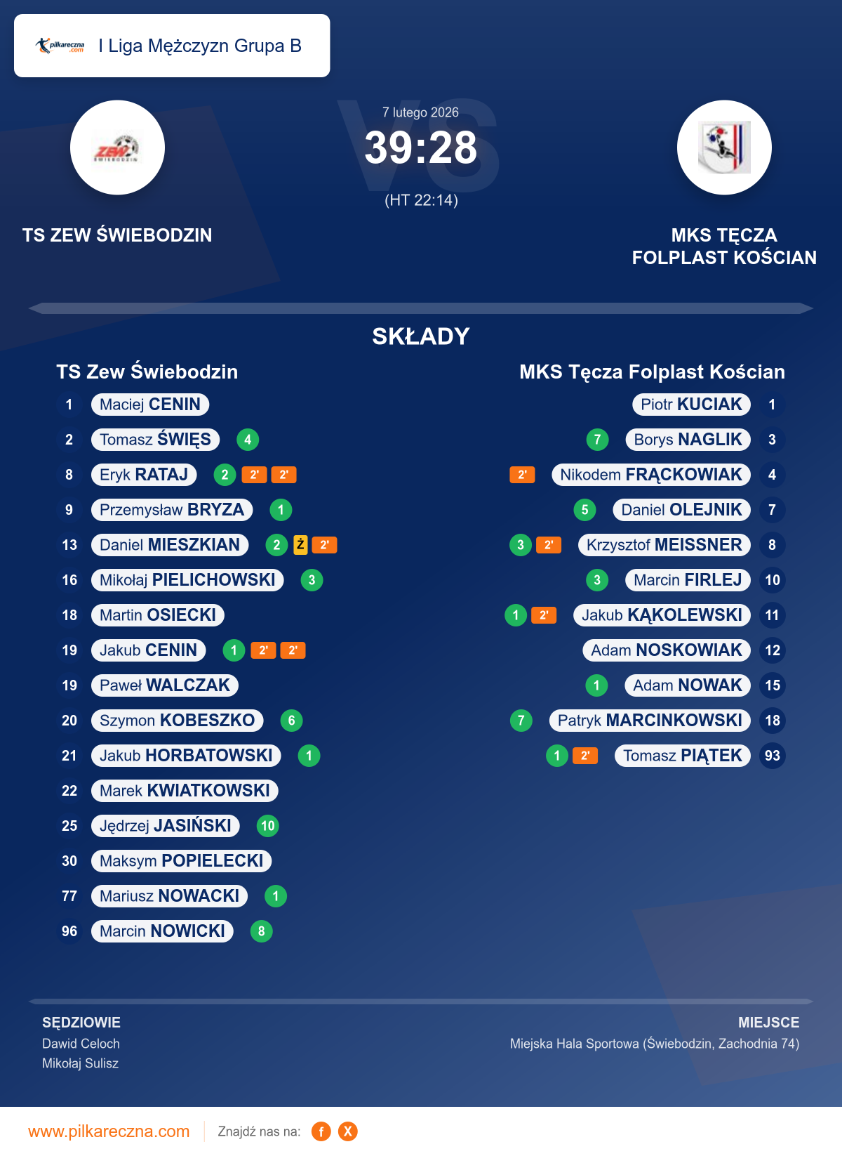 TS Zew Świebodzin 39–28 MKS Tęcza Folplast Kościan