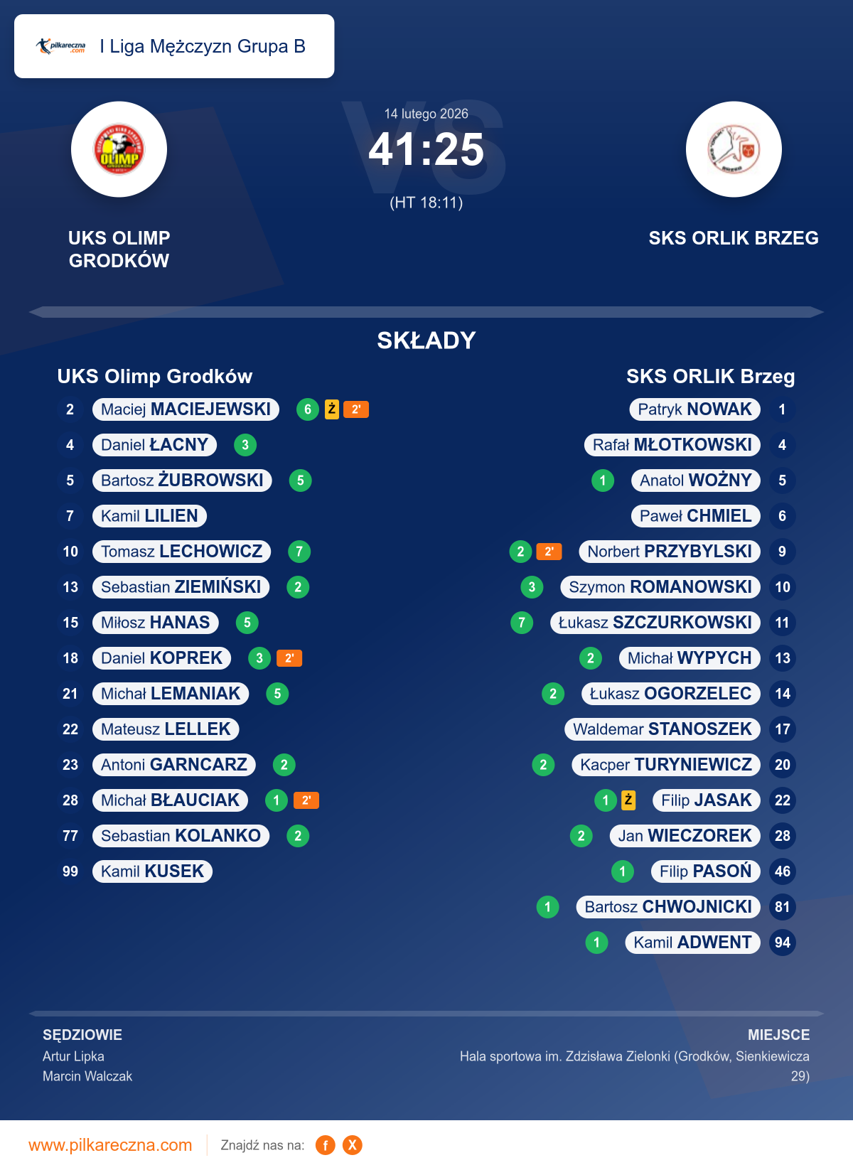 Sędziowali: Artur Lipka, Marcin Walczak