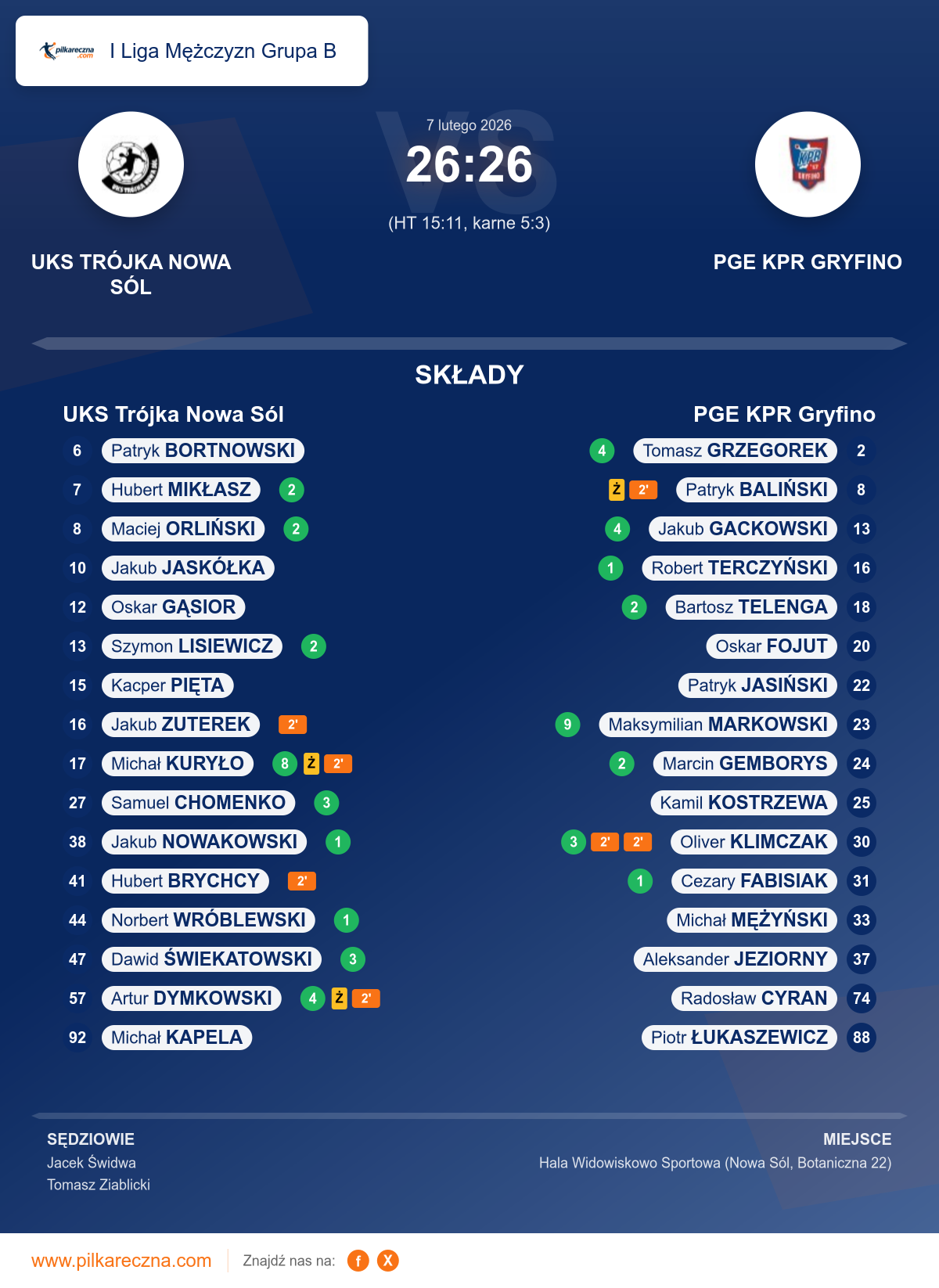 Wynik: 26–26 (HT 15–11), po karnych 5–3