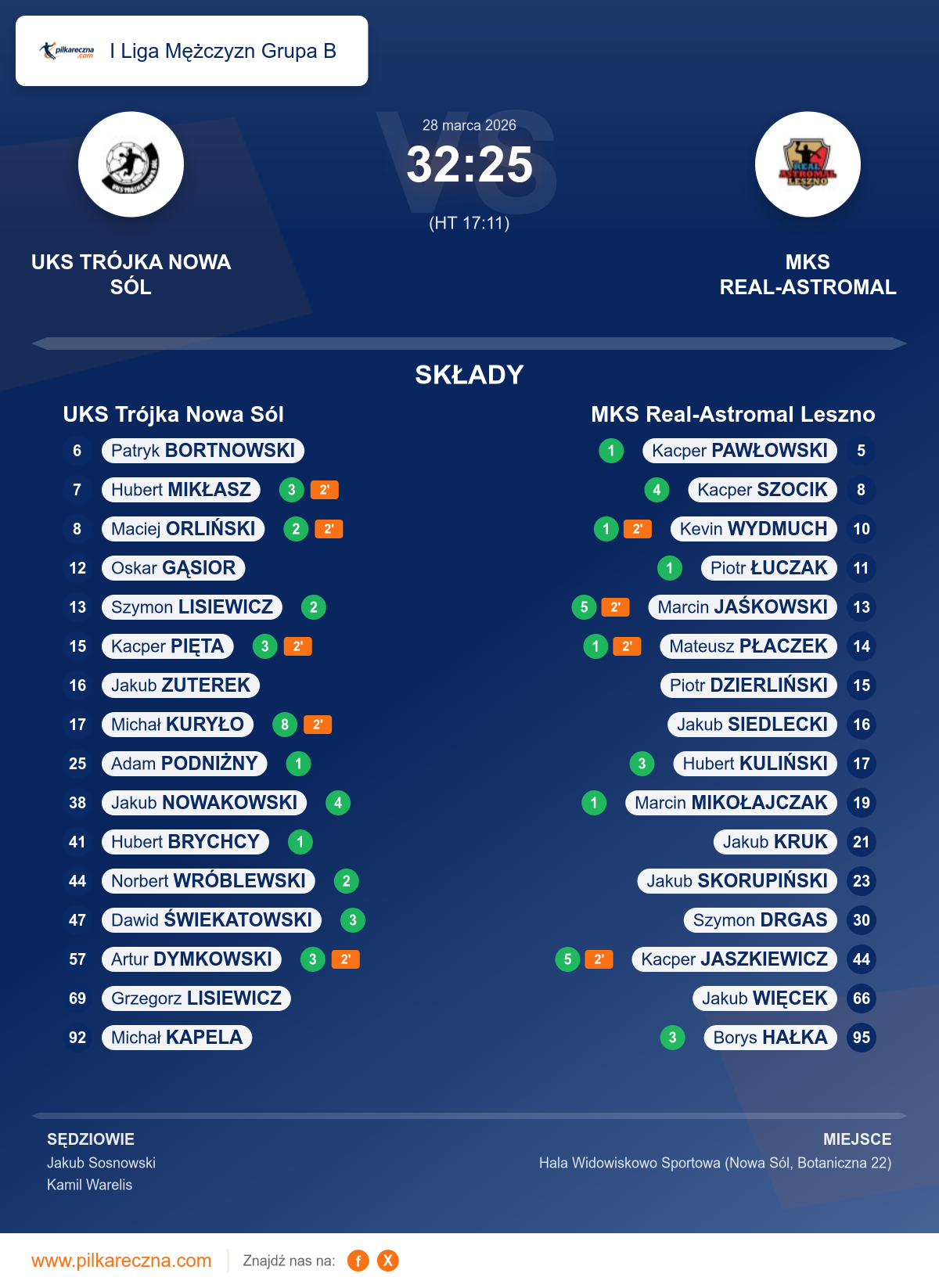UKS Trójka Nowa Sól 32–25 MKS Real-Astromal Leszno