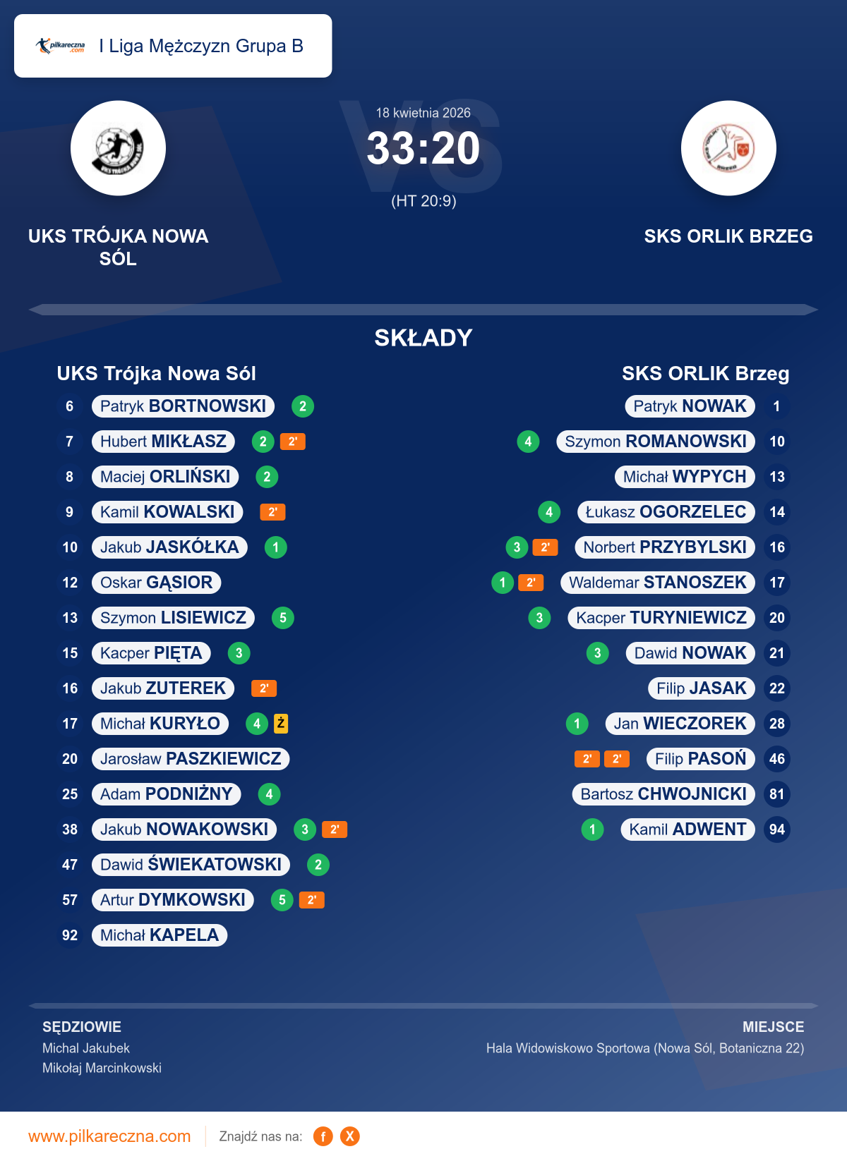 UKS Trójka Nowa Sól 33–20 SKS ORLIK Brzeg