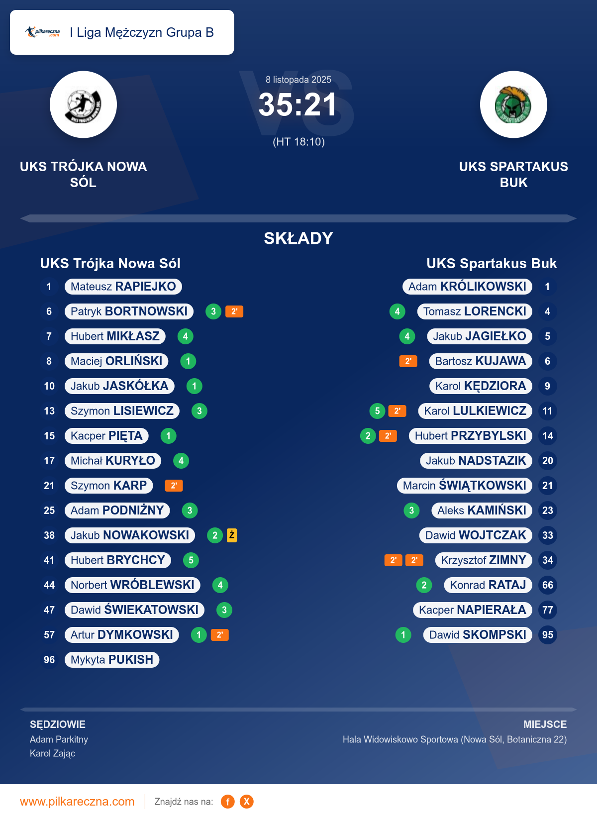 UKS Trójka Nowa Sól 35–21 UKS Spartakus Buk