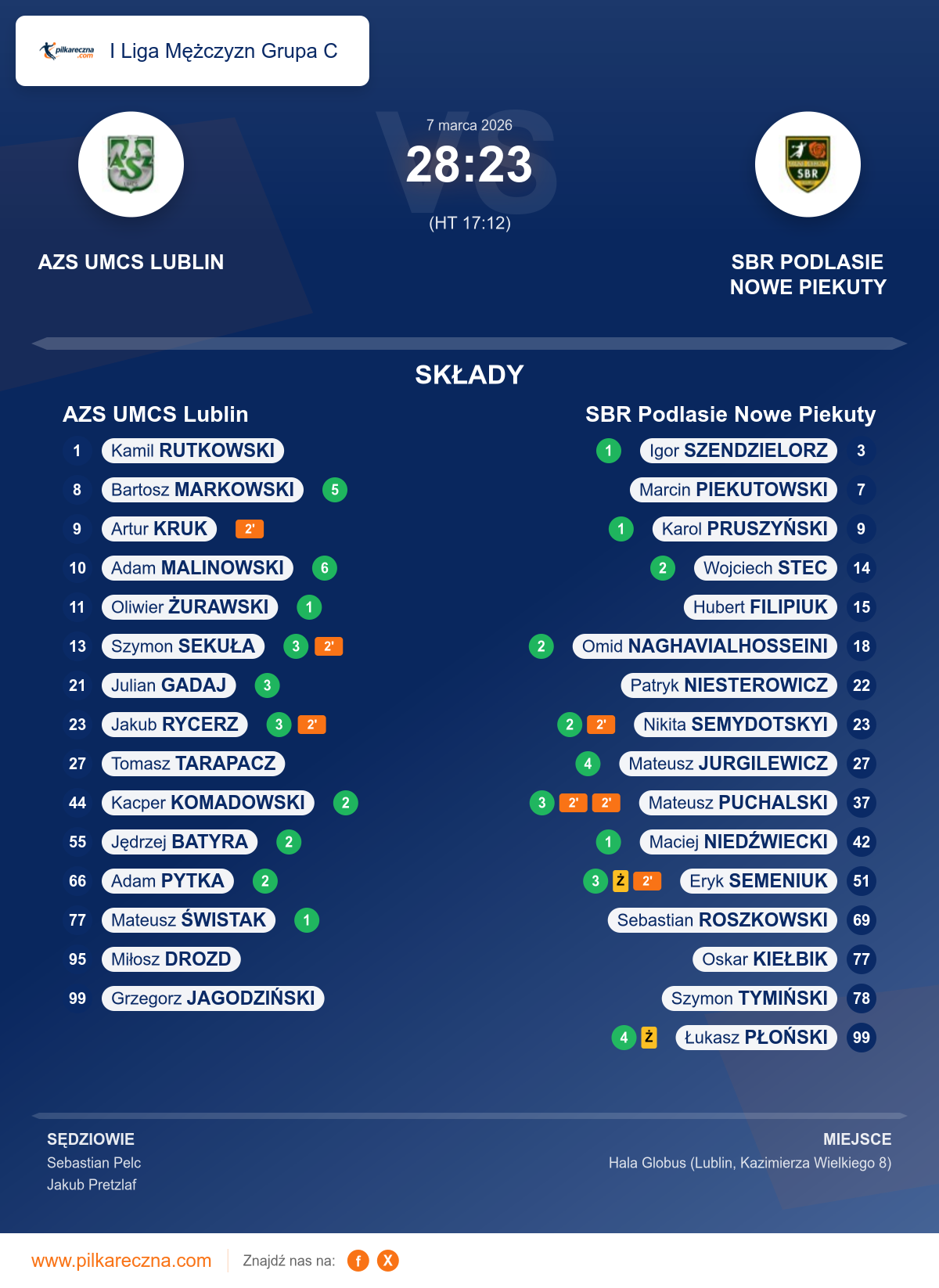 Sędziowali: Sebastian Pelc, Jakub Pretzlaf