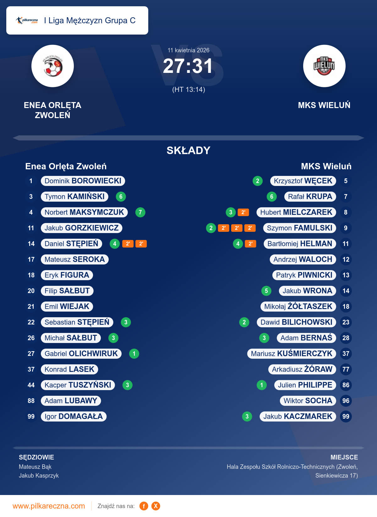 Enea Orlęta Zwoleń 27–31 MKS Wieluń