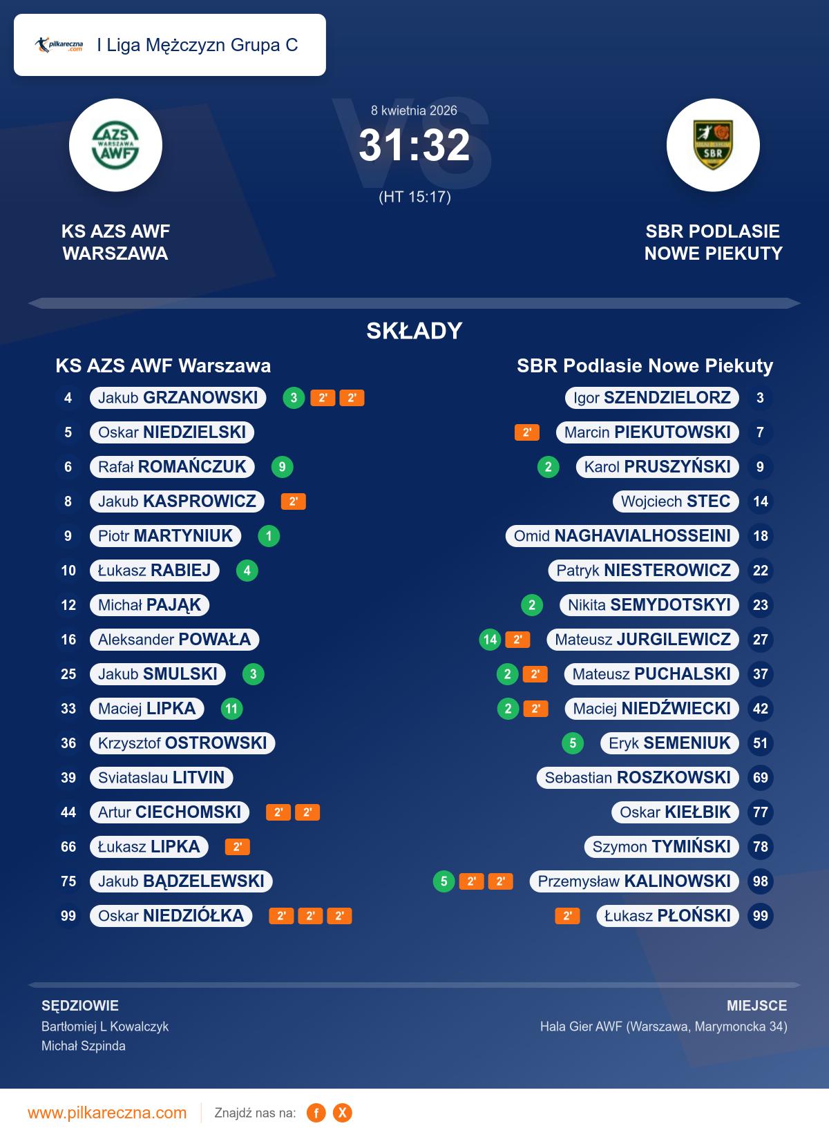 KS AZS AWF Warszawa — SBR Podlasie Nowe Piekuty