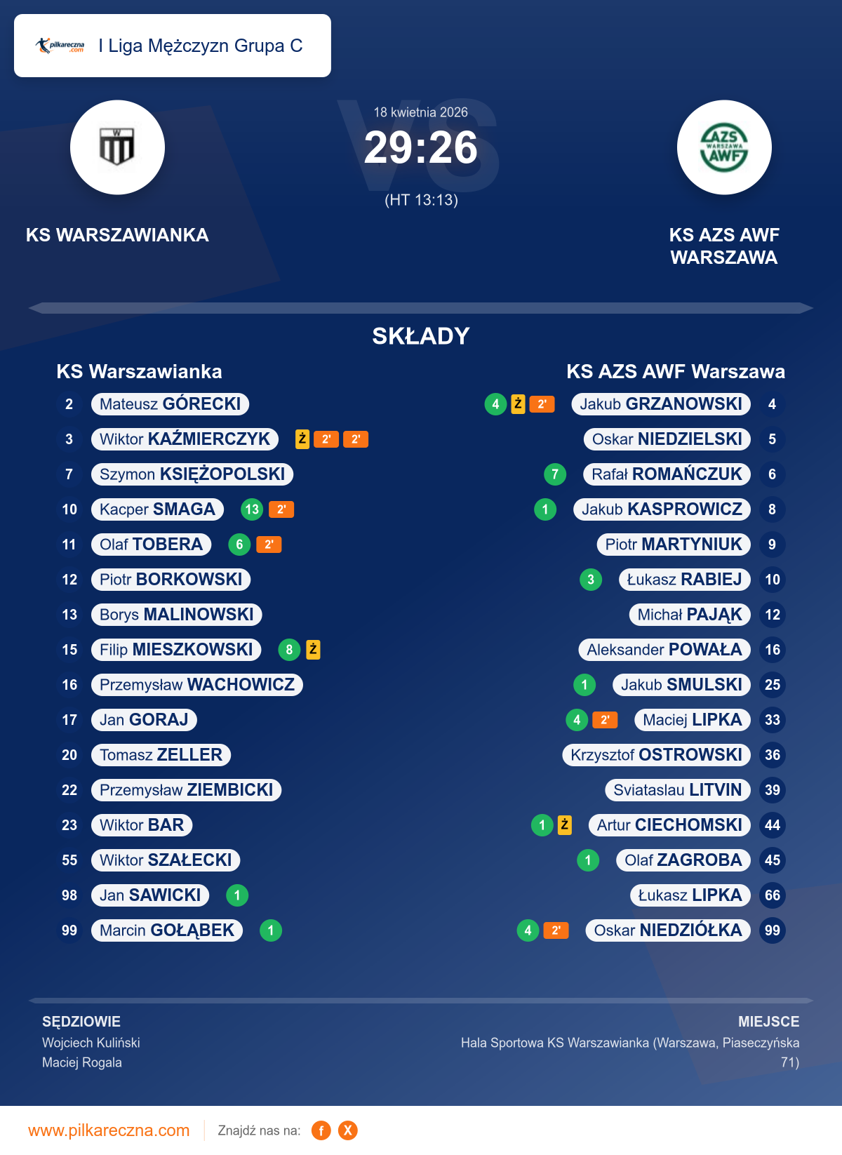KS Warszawianka 29–26 KS AZS AWF Warszawa