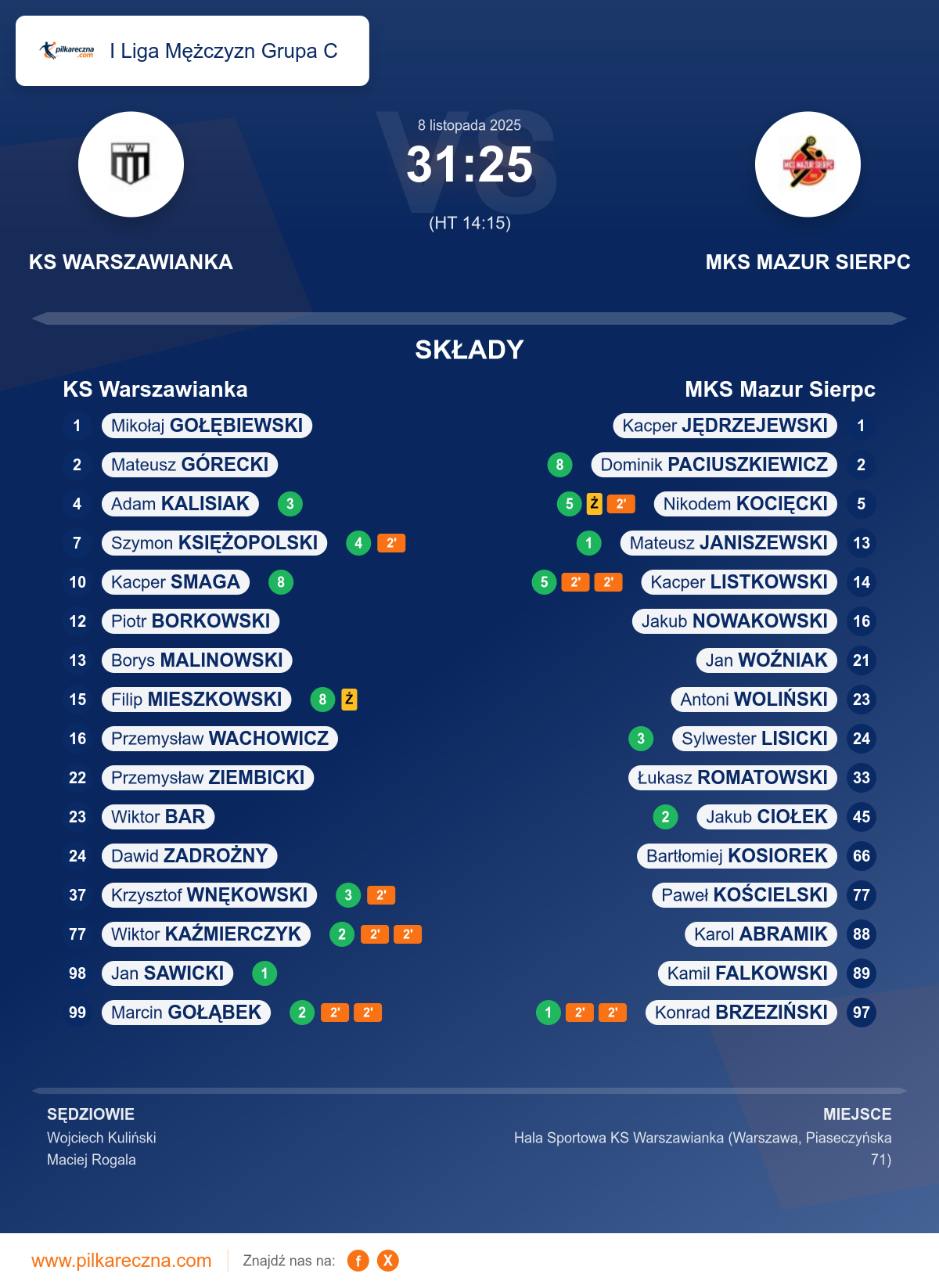 KS Warszawianka 31–25 MKS Mazur Sierpc