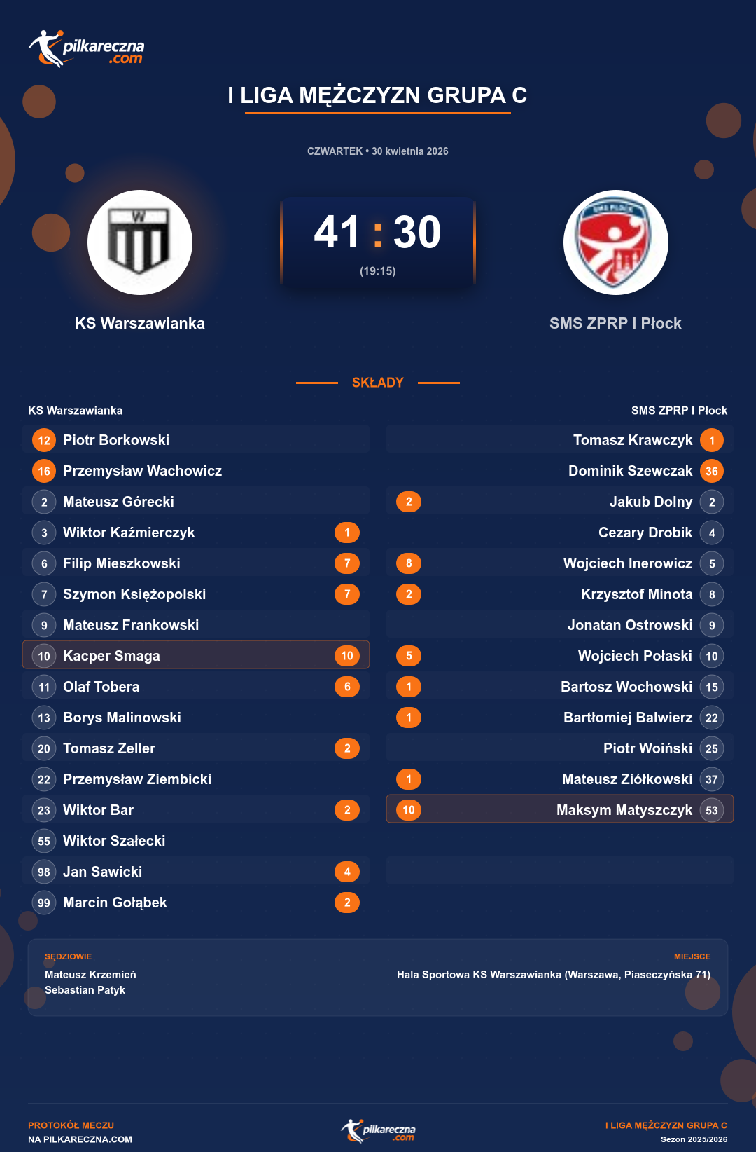 KS Warszawianka 41–30 SMS ZPRP I Płock