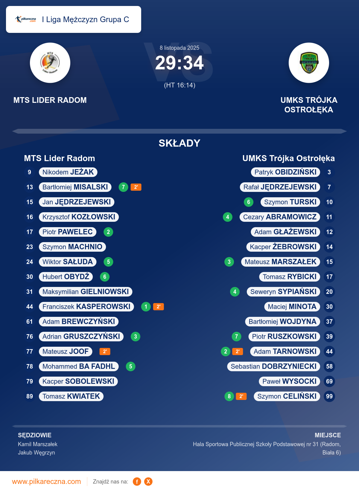 MTS Lider Radom 29–34 UMKS Trójka Ostrołęka