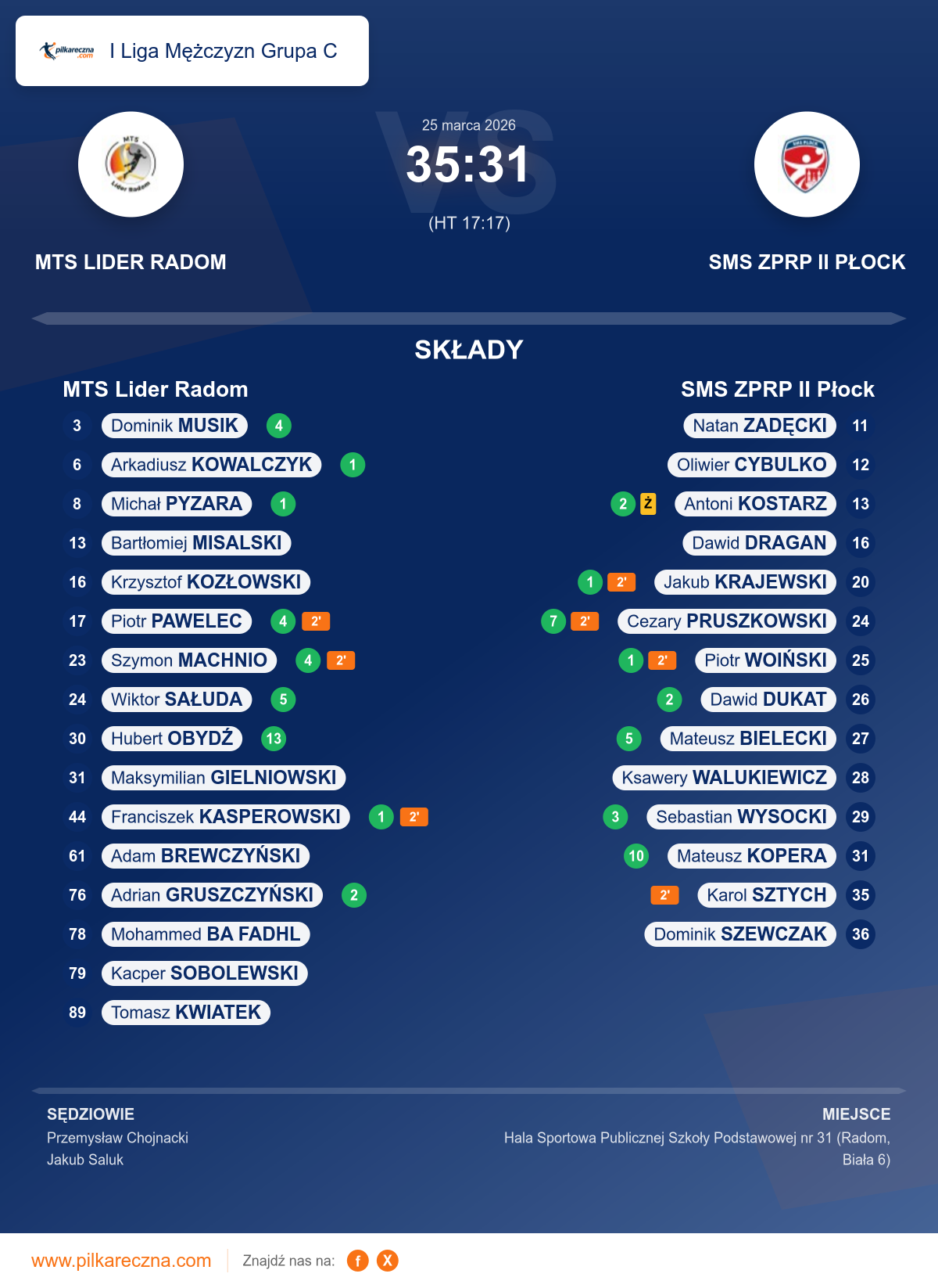 Sędziowali: Przemysław Chojnacki, Jakub Saluk