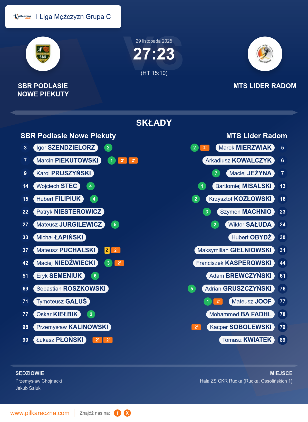 SBR Podlasie Nowe Piekuty 27–23 MTS Lider Radom