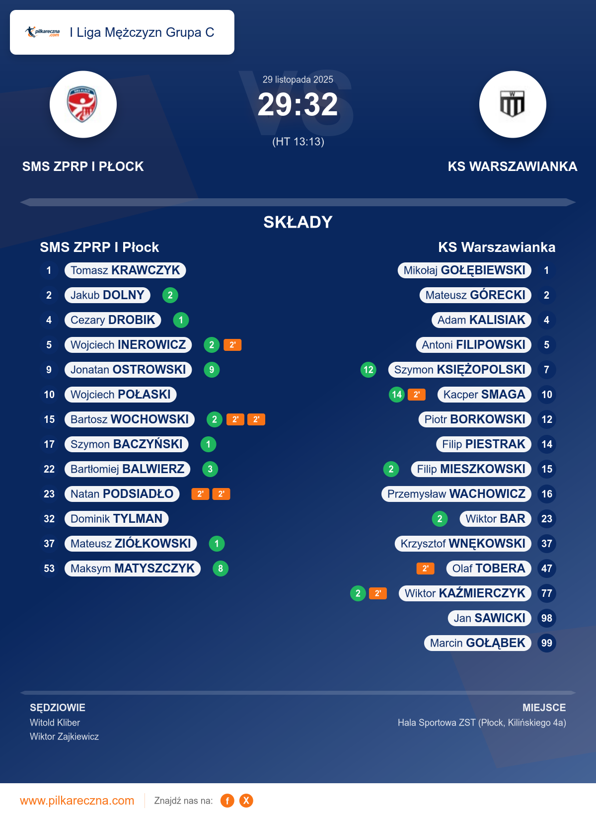 Wynik: 29–32 (HT 13–13)