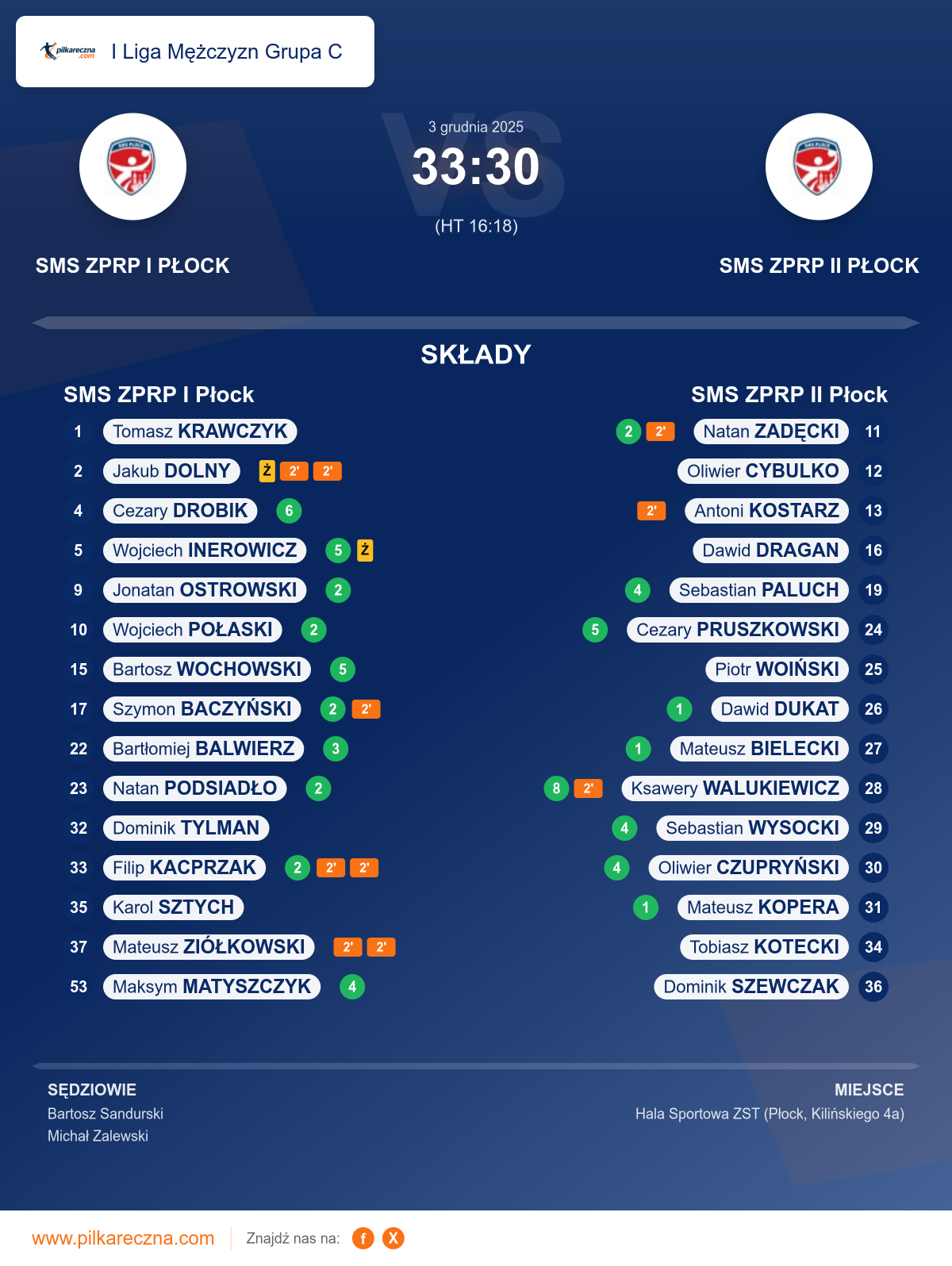 Sędziowali: Bartosz Sandurski, Michał Zalewski