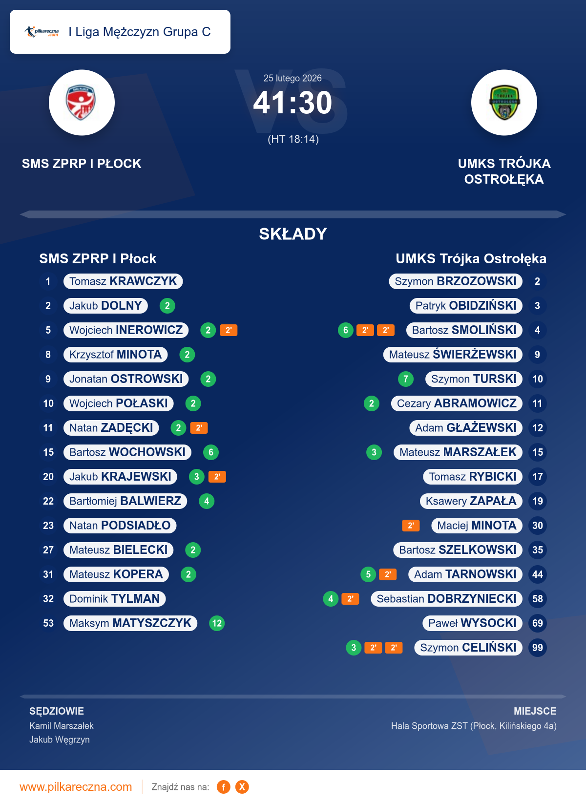 SMS ZPRP I Płock 41–30 UMKS Trójka Ostrołęka