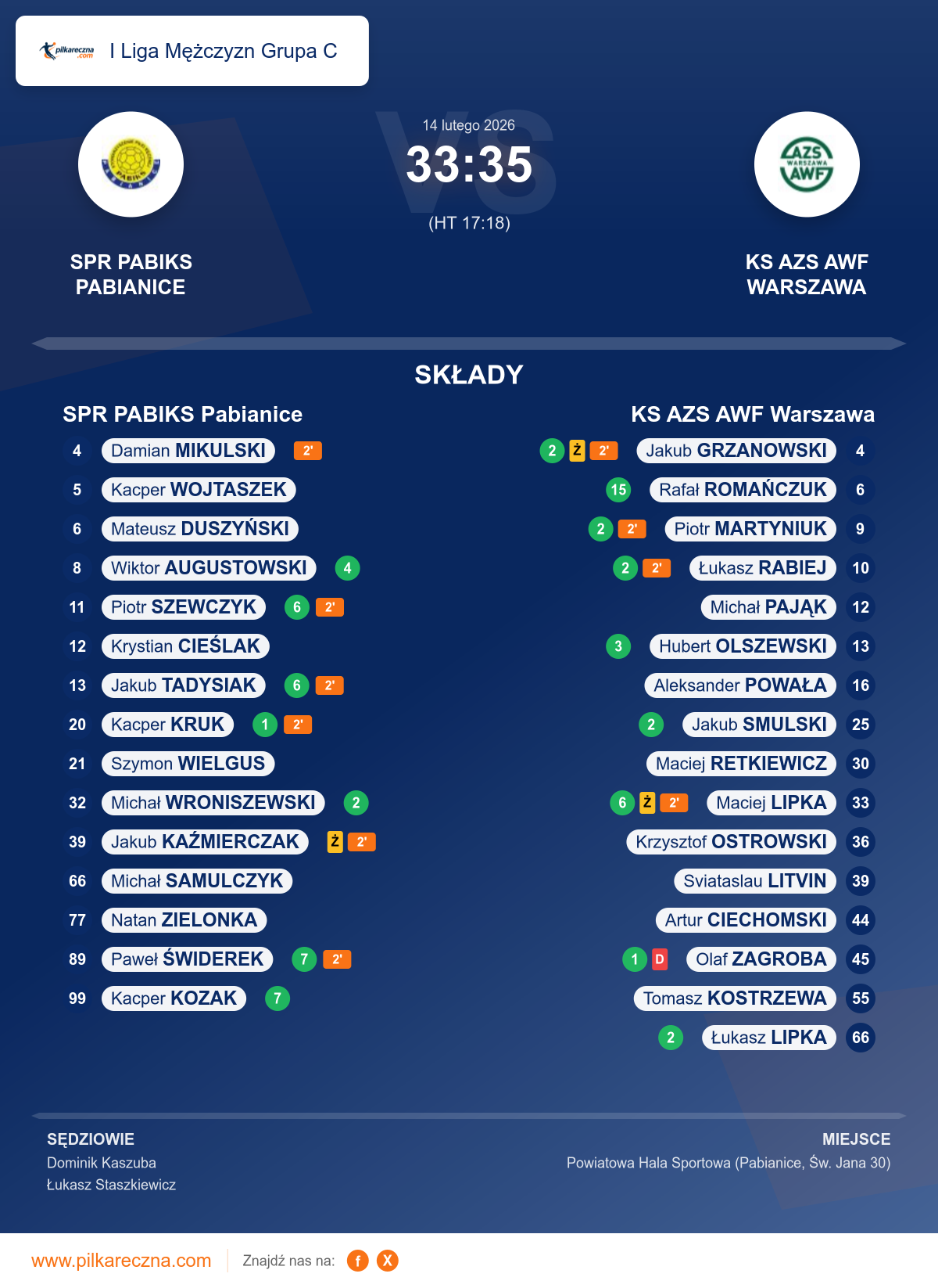 SPR PABIKS Pabianice 33–35 KS AZS AWF Warszawa
