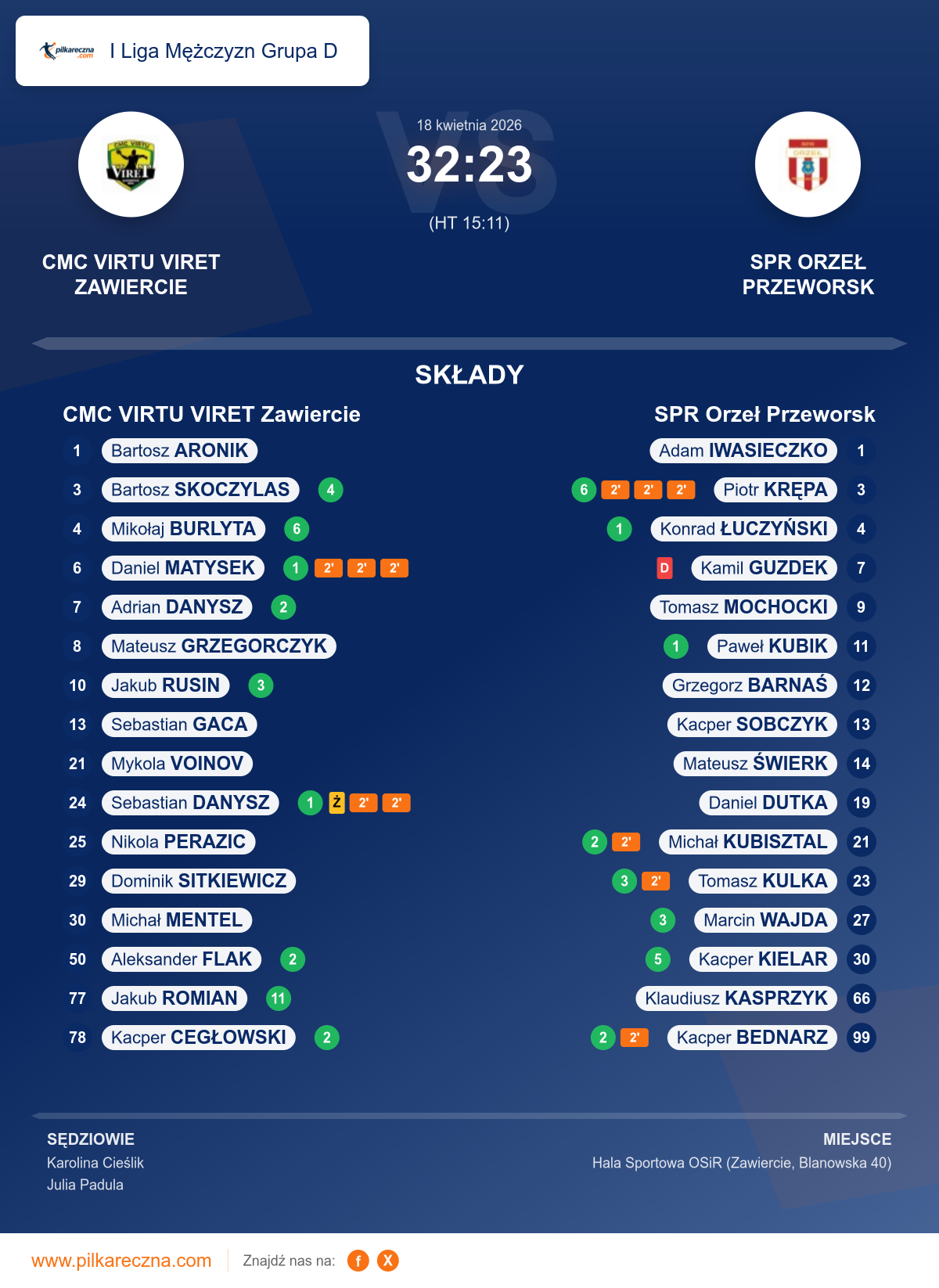 CMC VIRTU VIRET Zawiercie 32–23 SPR Orzeł Przeworsk