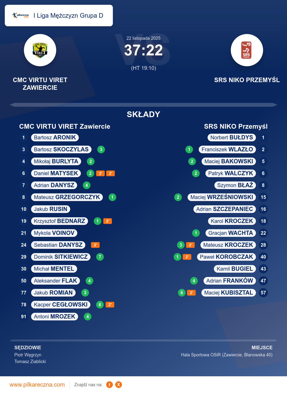 CMC VIRTU VIRET Zawiercie 37–22 SRS NIKO Przemyśl