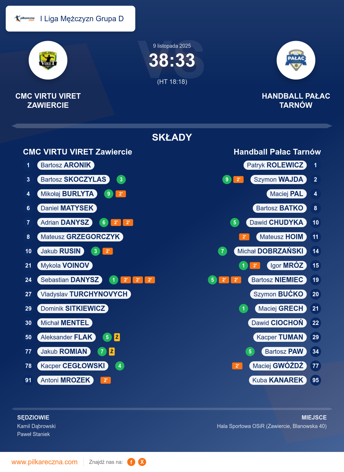 CMC VIRTU VIRET Zawiercie 38–33 Handball Pałac Tarnów