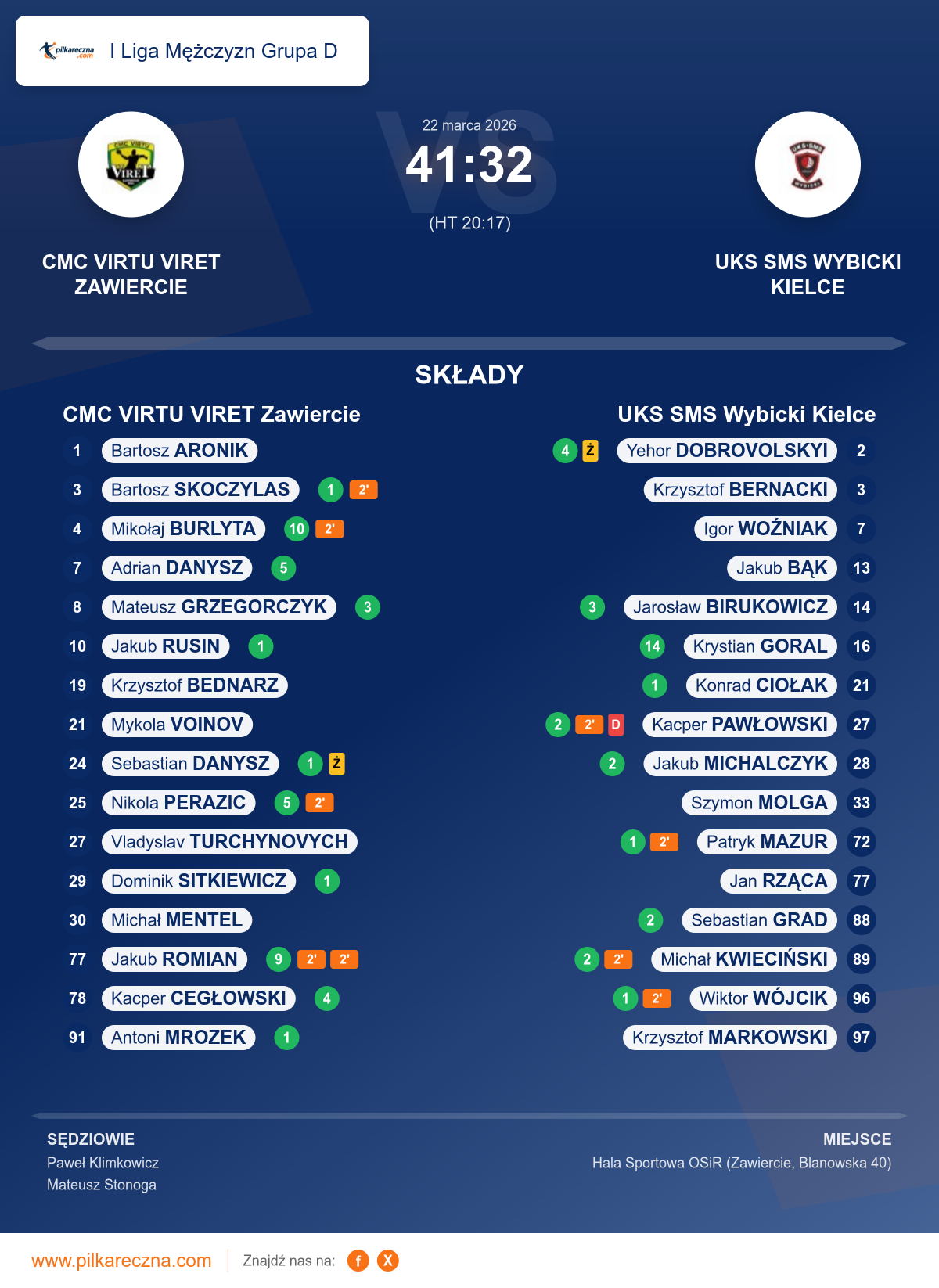 CMC VIRTU VIRET Zawiercie — UKS SMS Wybicki Kielce