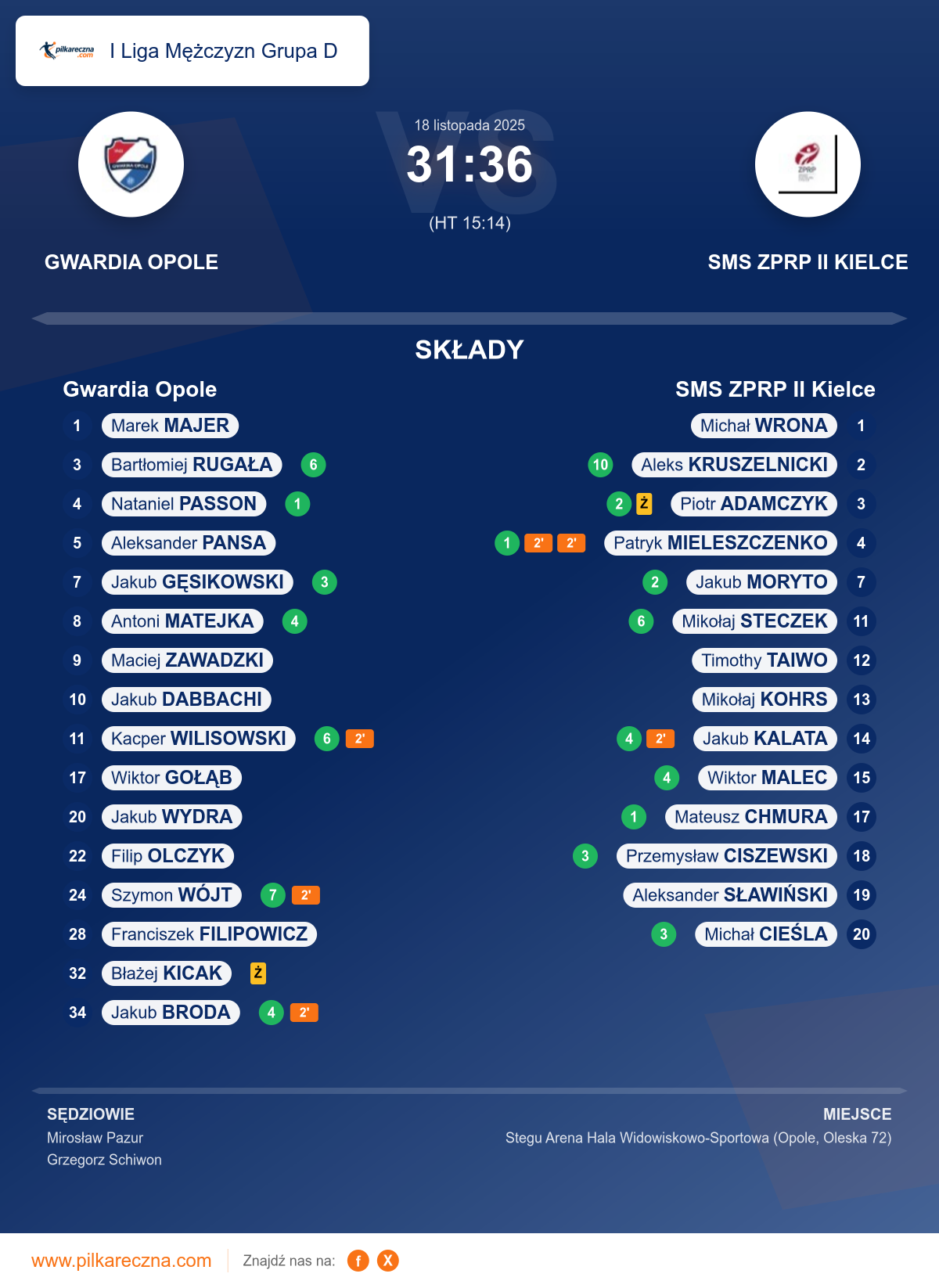 Sędziowali: Mirosław Pazur, Grzegorz Schiwon