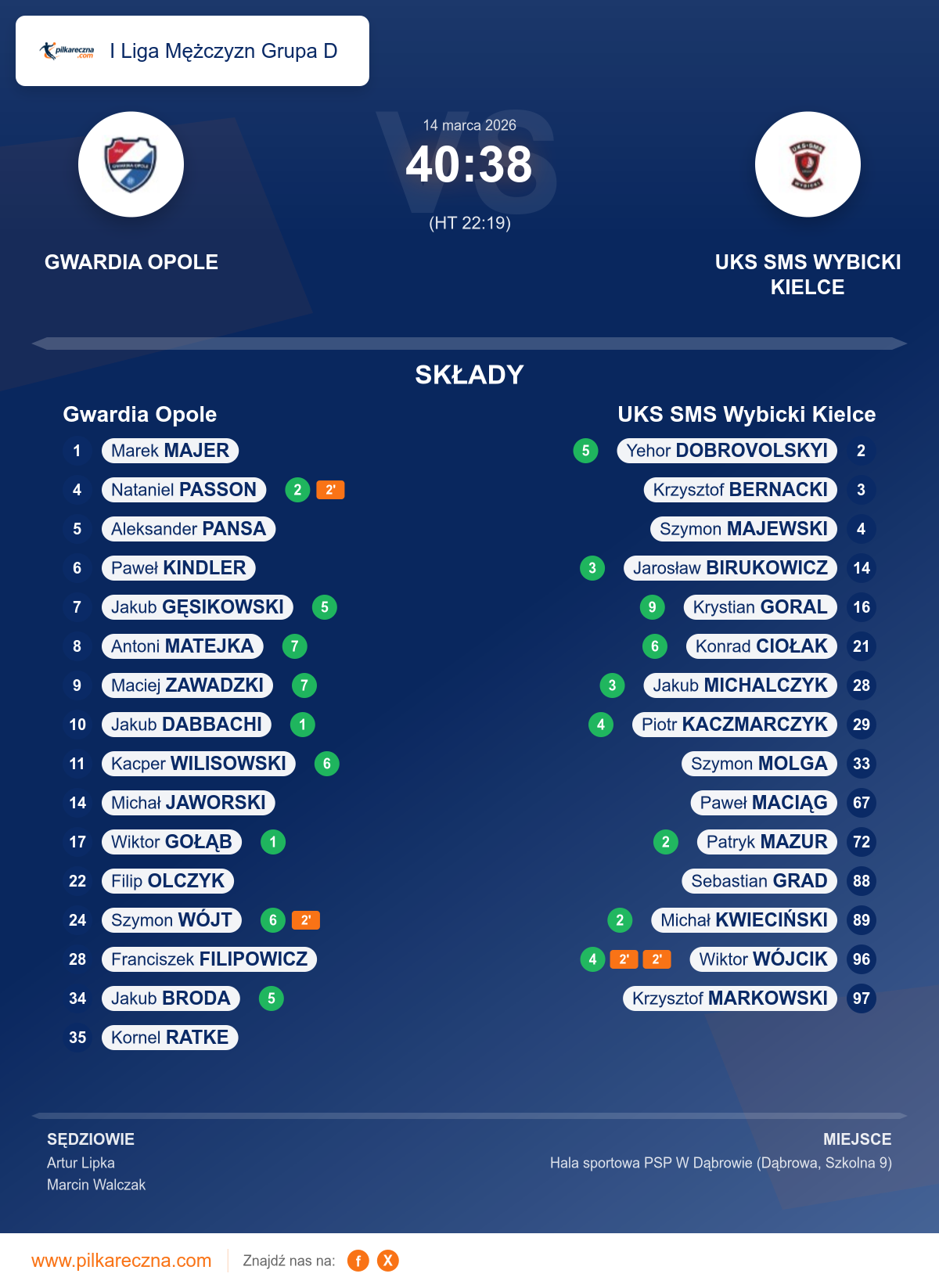 Gwardia Opole 40–38 UKS SMS Wybicki Kielce