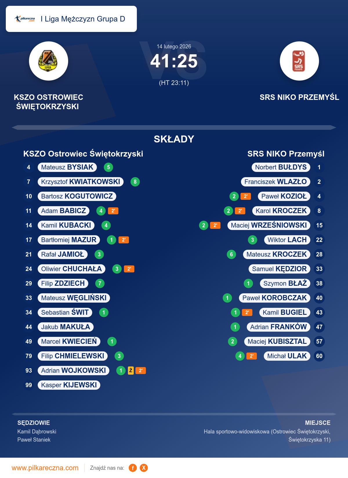 KSZO Ostrowiec Świętokrzyski 41–25 SRS NIKO Przemyśl