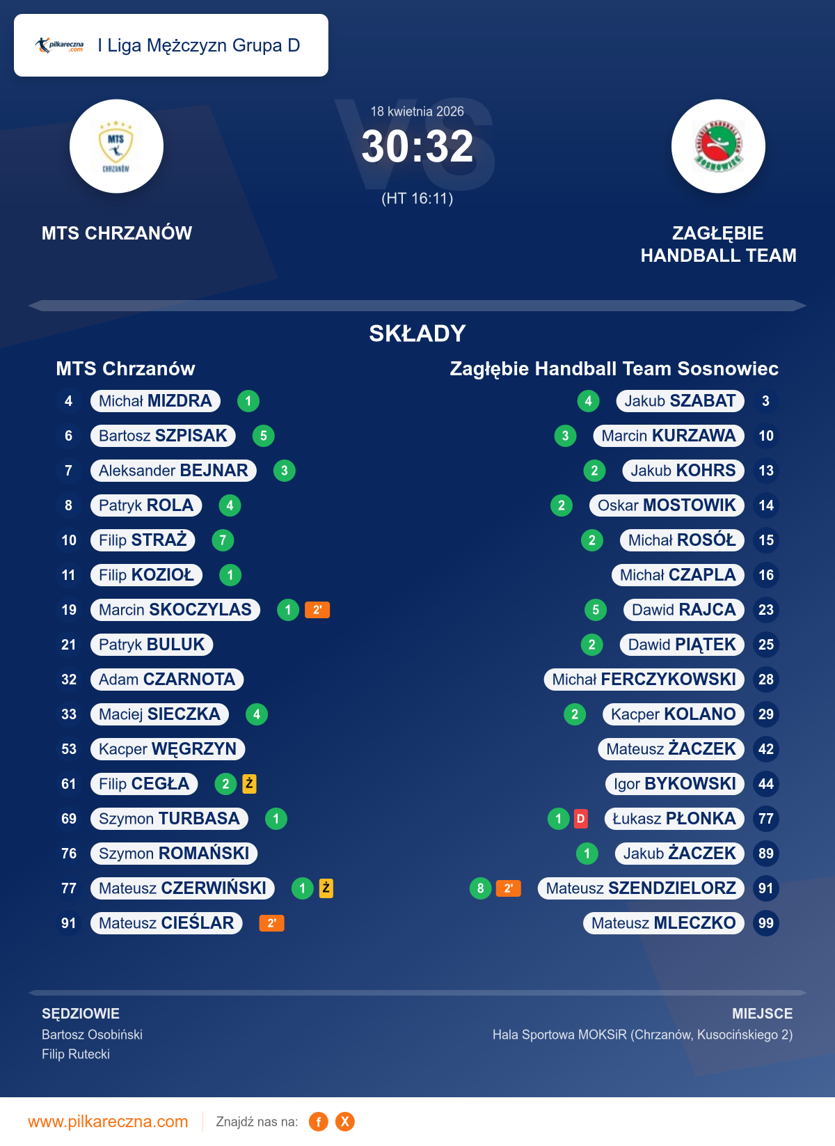 Wynik: 30–32 (HT 16–11)