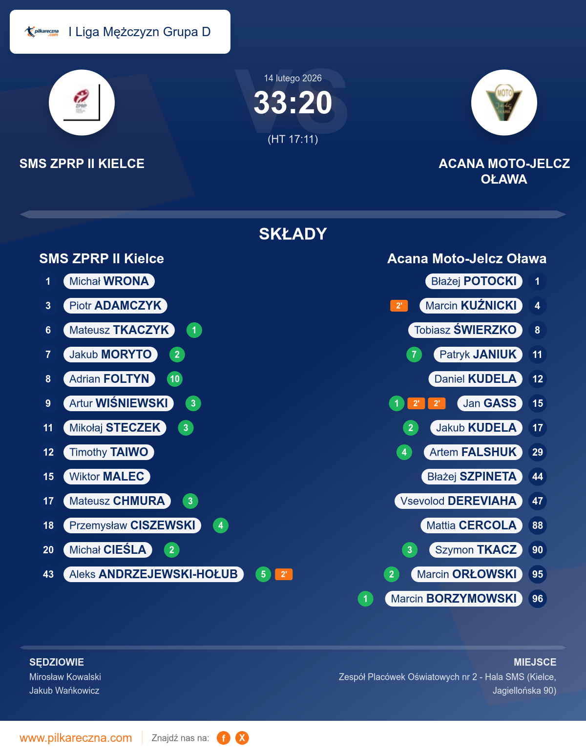 SMS ZPRP II Kielce 33–20 Acana Moto-Jelcz Oława