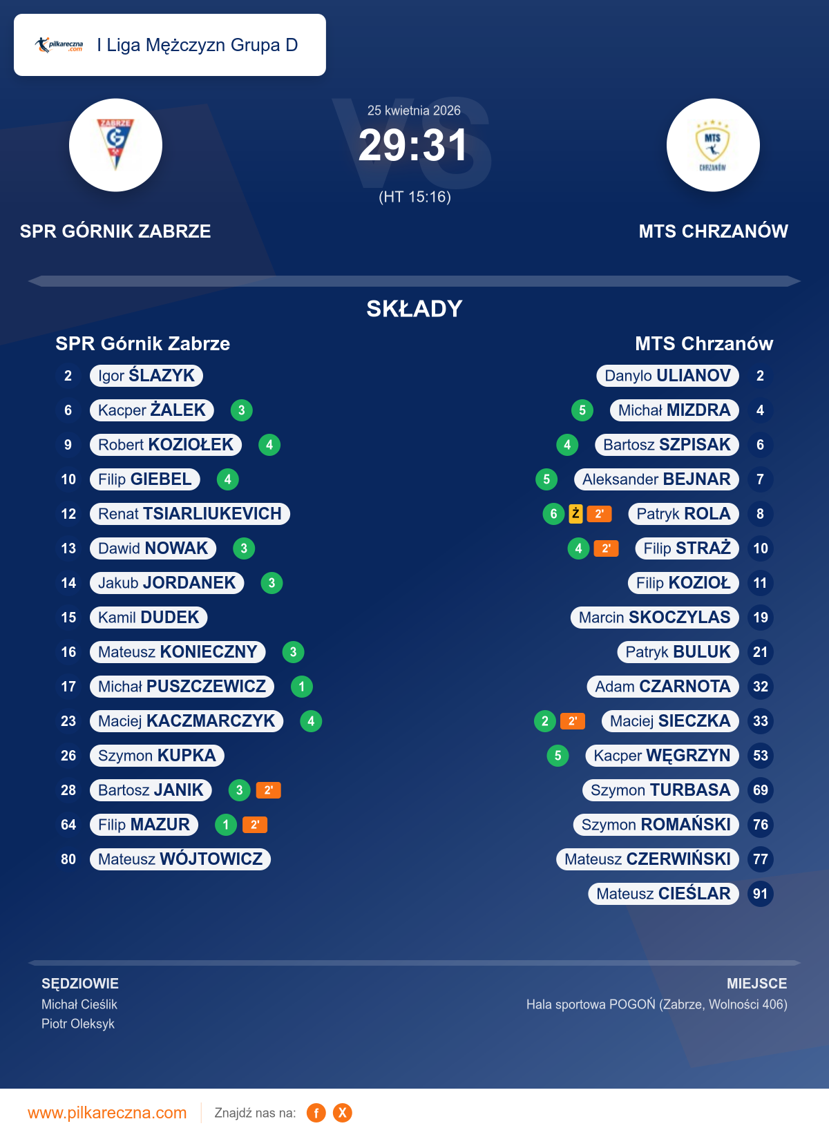SPR Górnik Zabrze 29–31 MTS Chrzanów