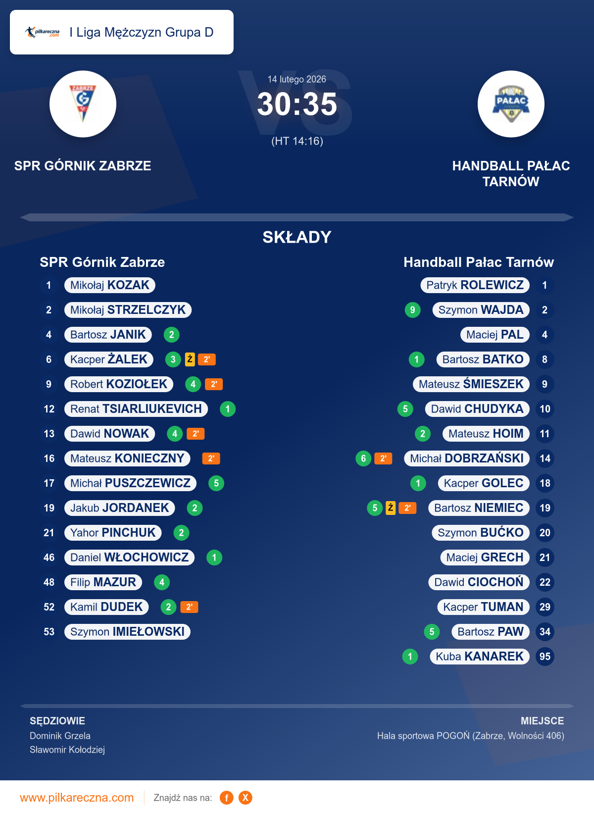 SPR Górnik Zabrze 30–35 Handball Pałac Tarnów