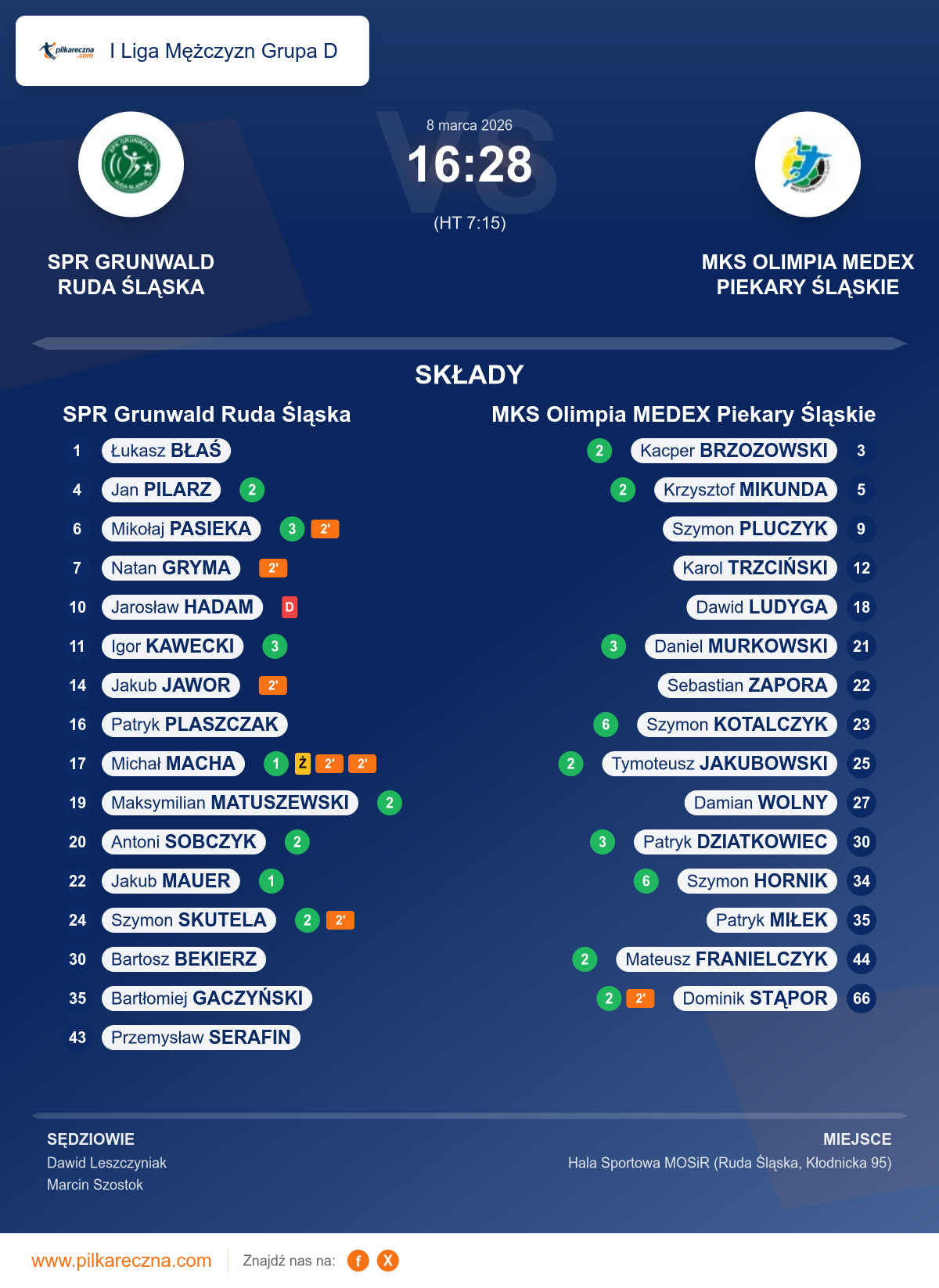 Sędziowali: Dawid Leszczyniak, Marcin Szostok