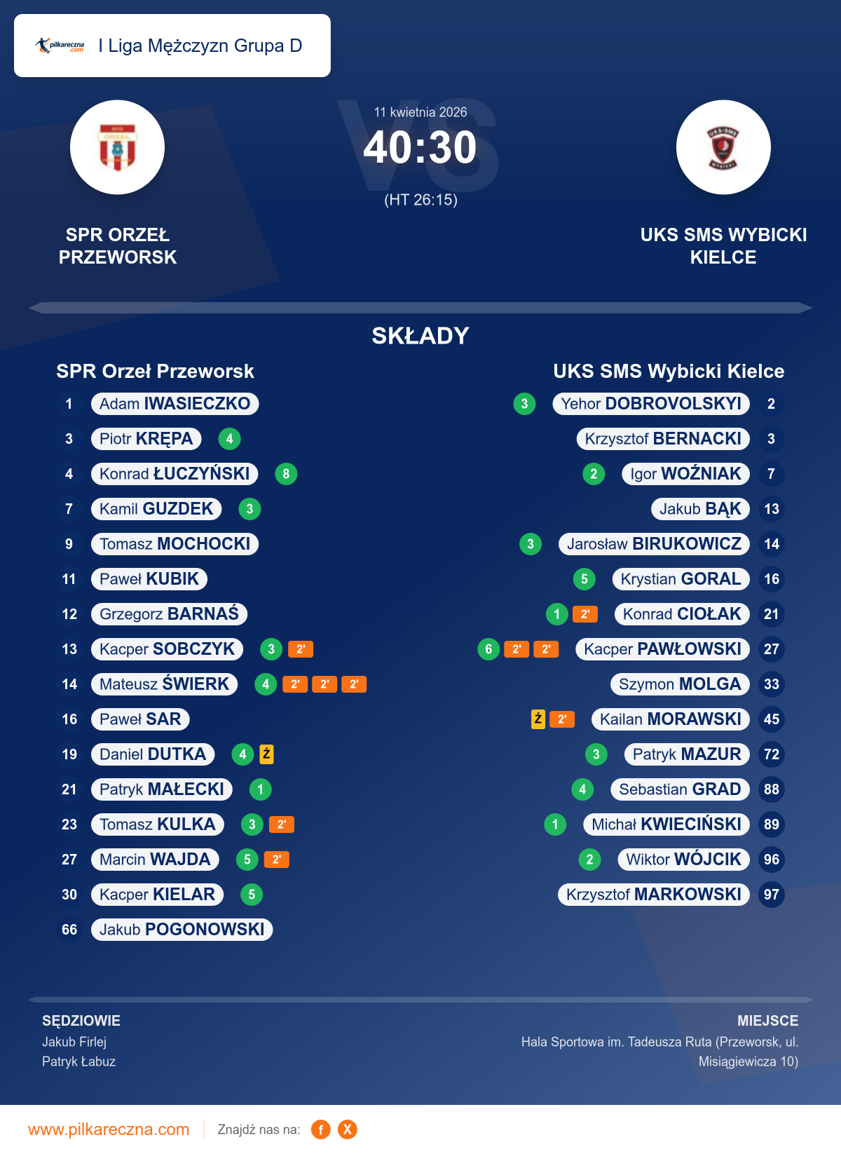 SPR Orzeł Przeworsk 40–30 UKS SMS Wybicki Kielce