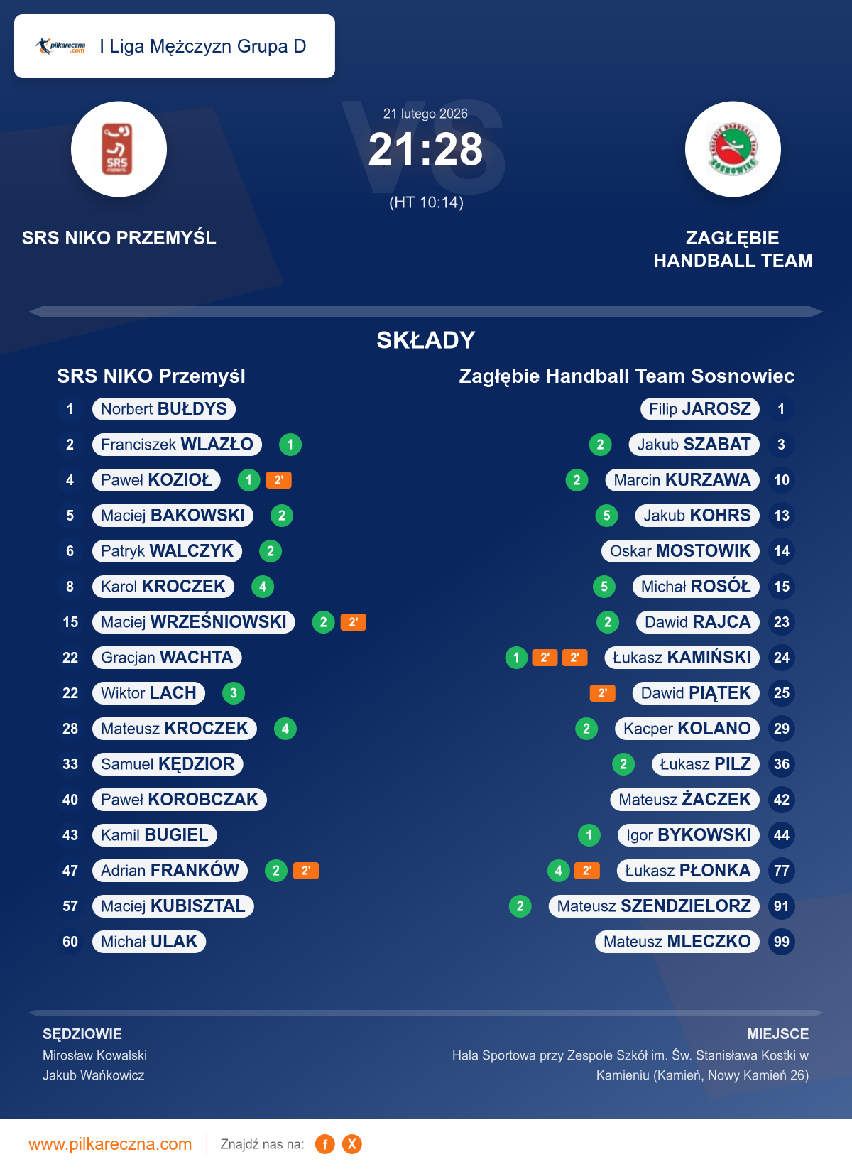 Bramkarze: Samuel Kędzior, Norbert Bułdys