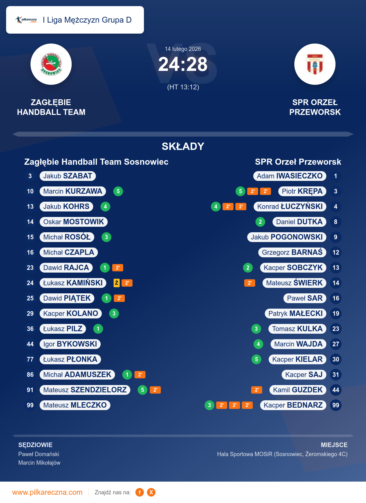 Zagłębie Handball Team Sosnowiec 24–28 SPR Orzeł Przeworsk
