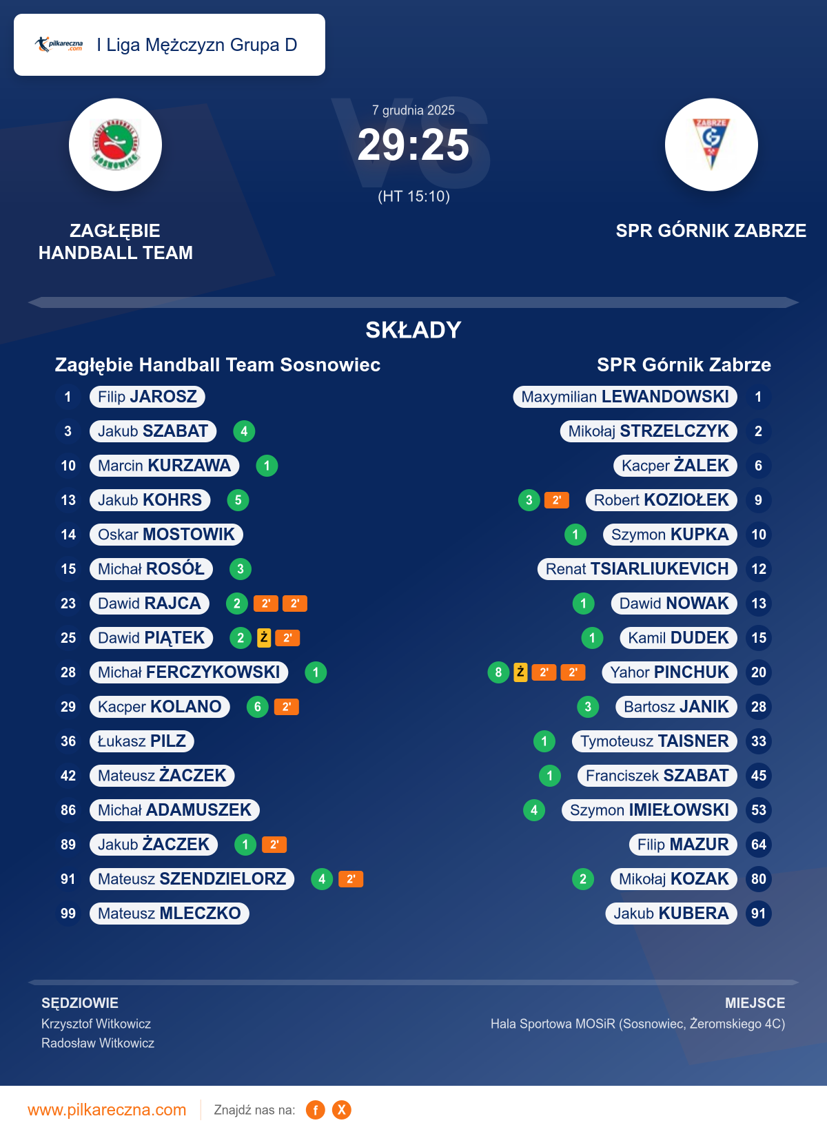 Zagłębie Handball Team Sosnowiec 29–25 SPR Górnik Zabrze