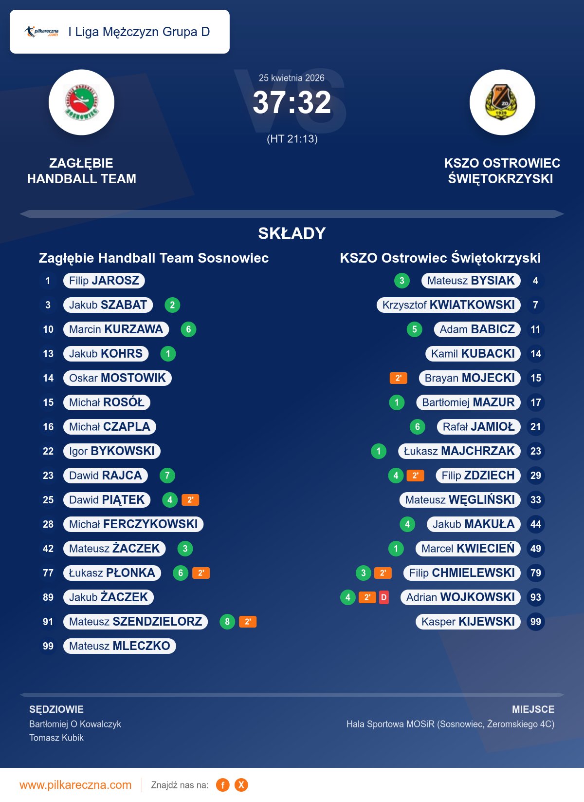 Wynik: 37–32 (HT 21–13)