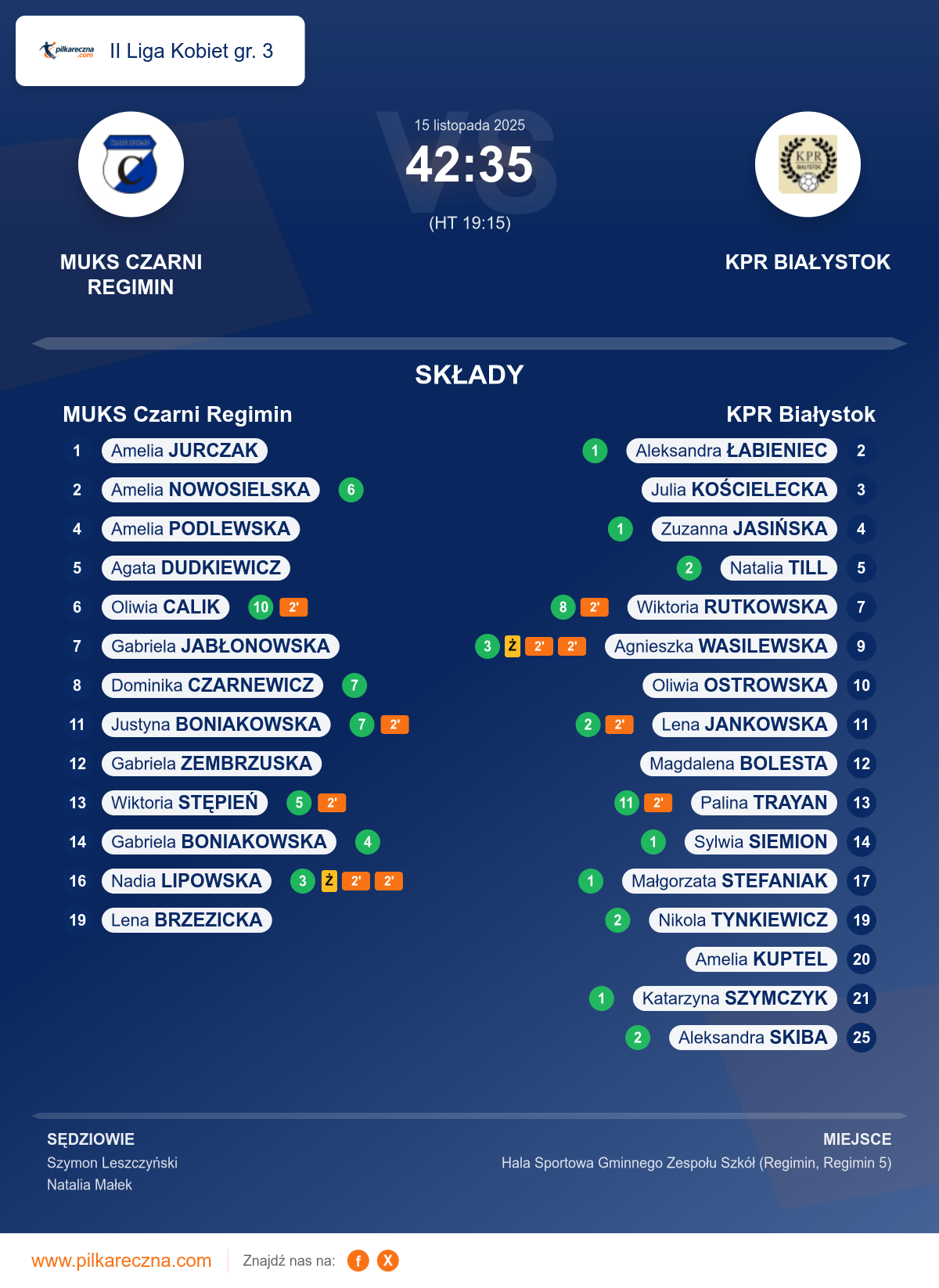 MUKS Czarni Regimin 42–35 KPR Białystok