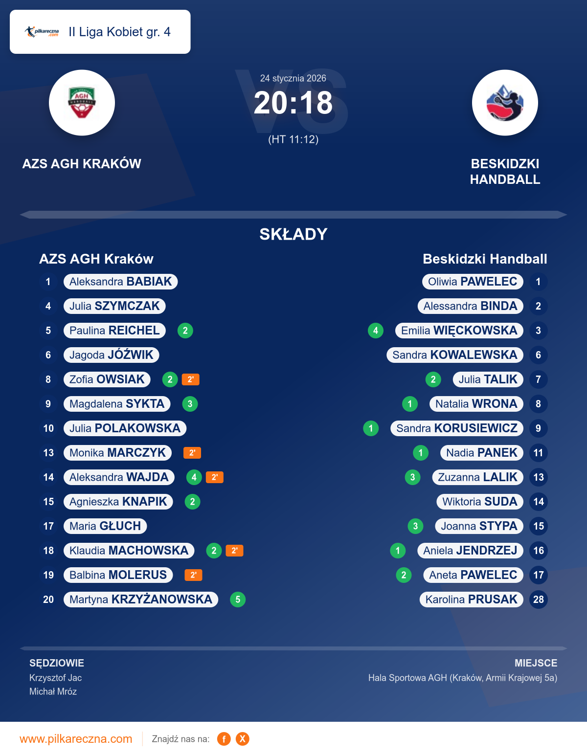 AZS AGH Kraków 20–18 Beskidzki Handball