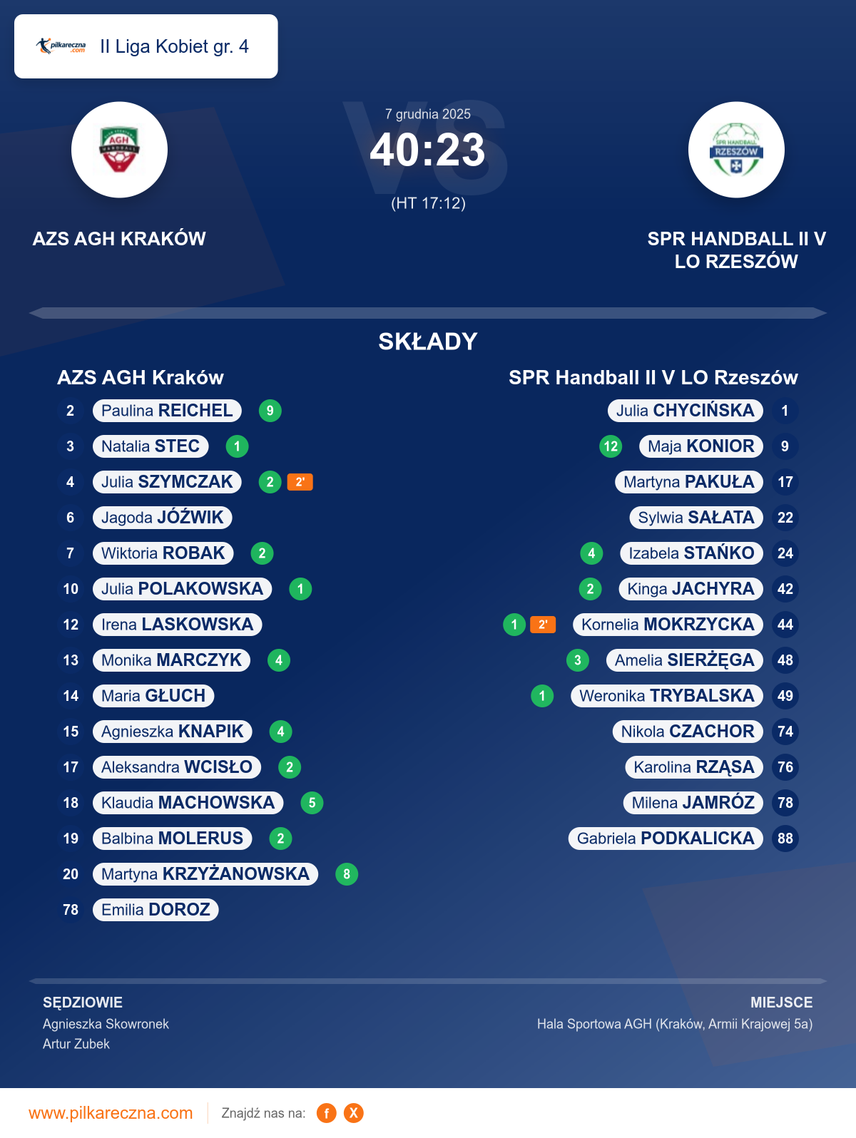 AZS AGH Kraków 40–23 SPR Handball II V LO Rzeszów