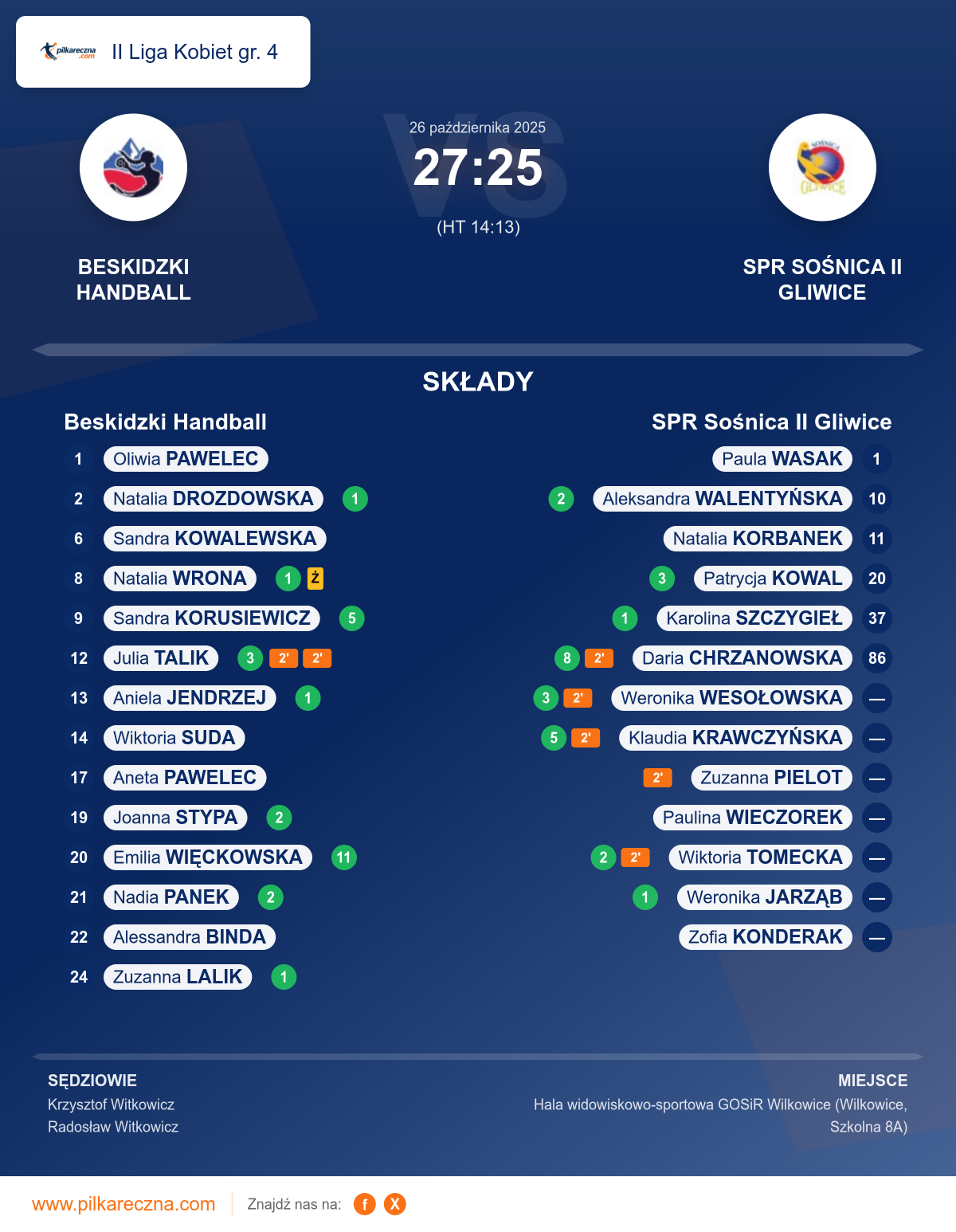 Beskidzki Handball 27–25 SPR Sośnica II Gliwice