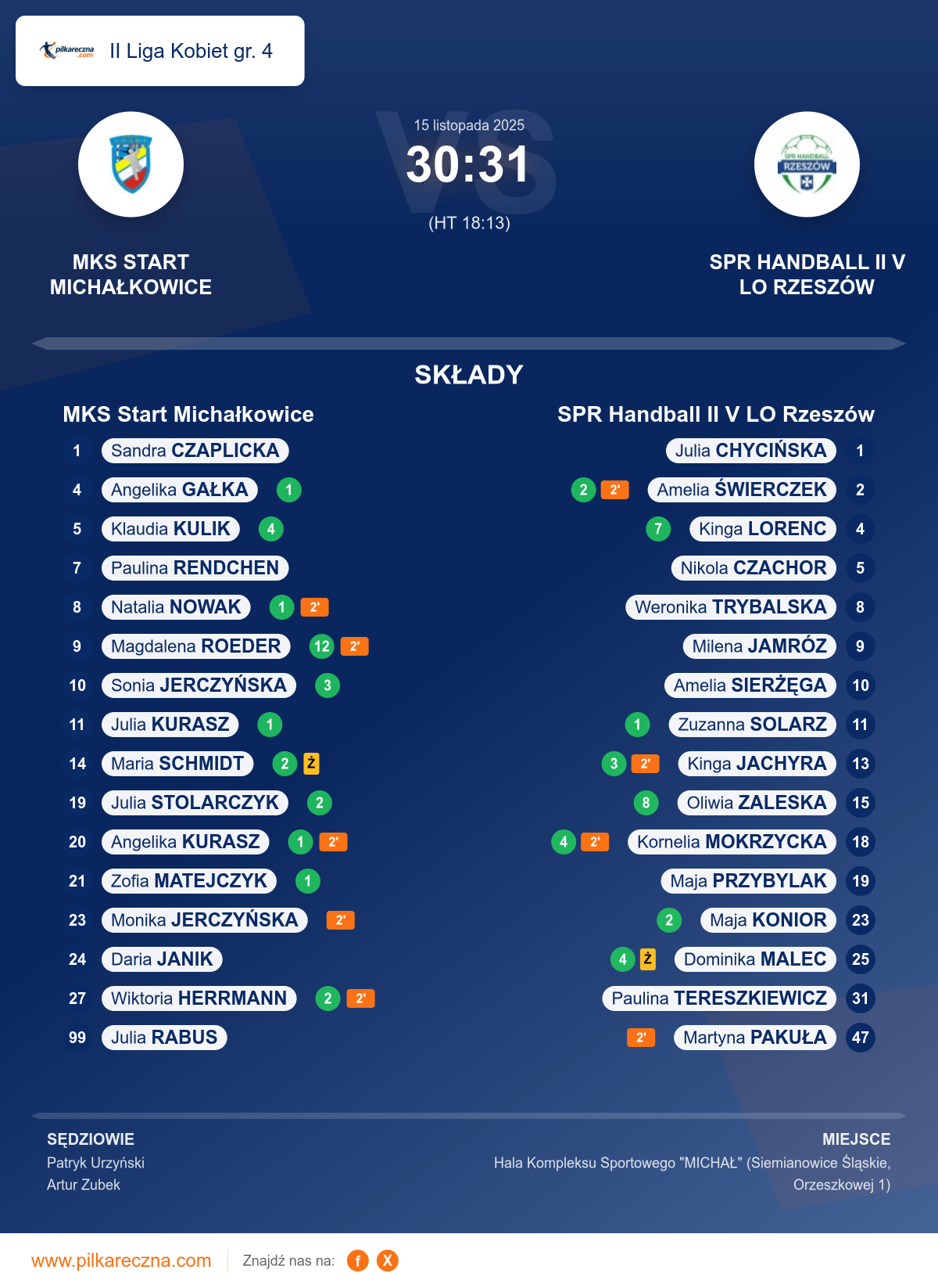 Sędziowali: Patryk Urzyński, Artur Zubek