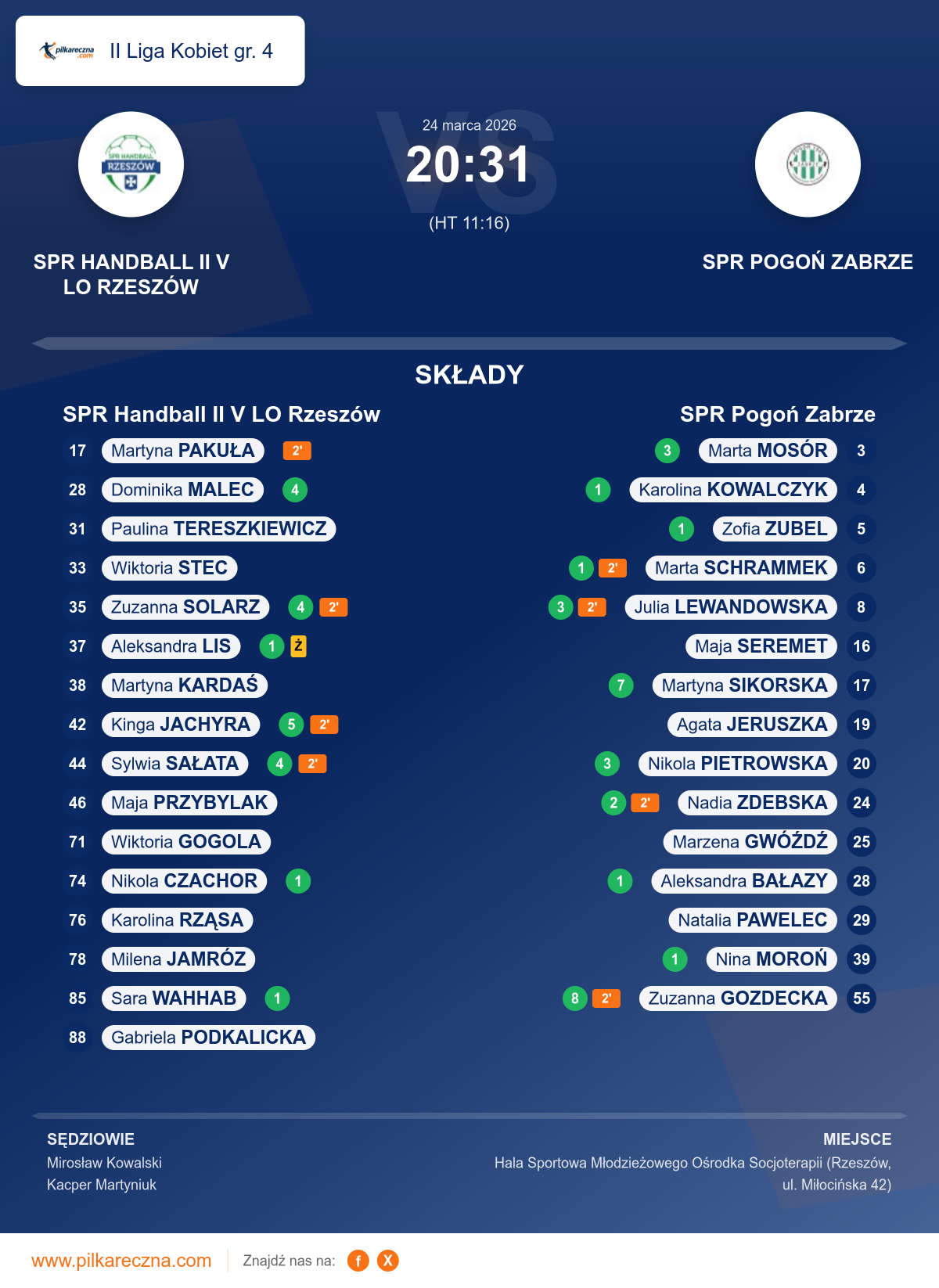 Sędziowali: Mirosław Kowalski, Kacper Martyniuk