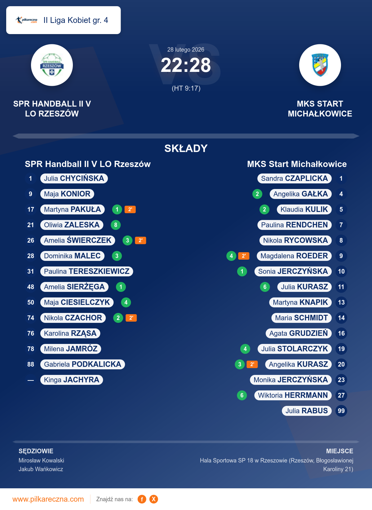 SPR Handball II V LO Rzeszów 22–28 MKS Start Michałkowice