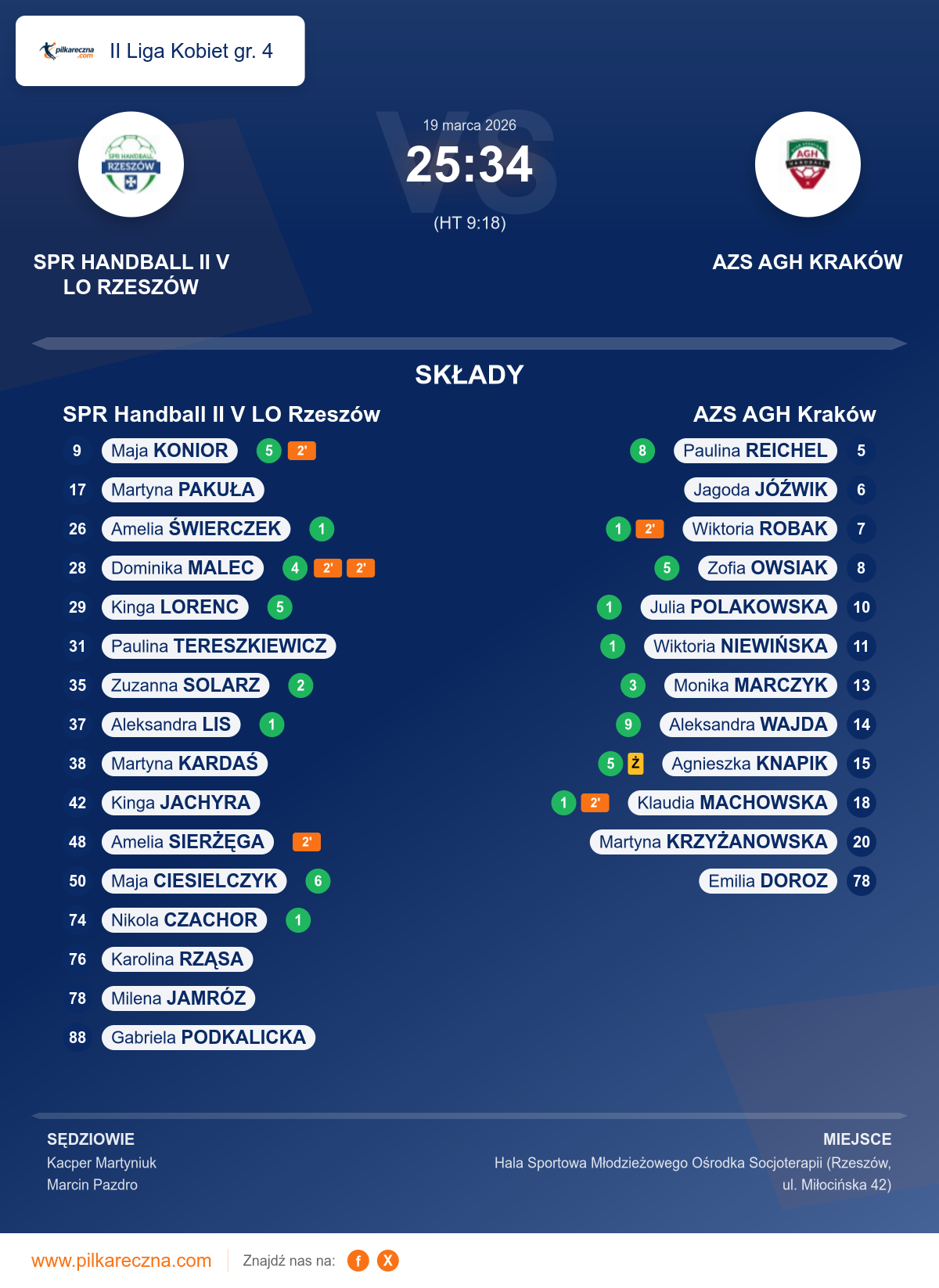 SPR Handball II V LO Rzeszów 25–34 AZS AGH Kraków
