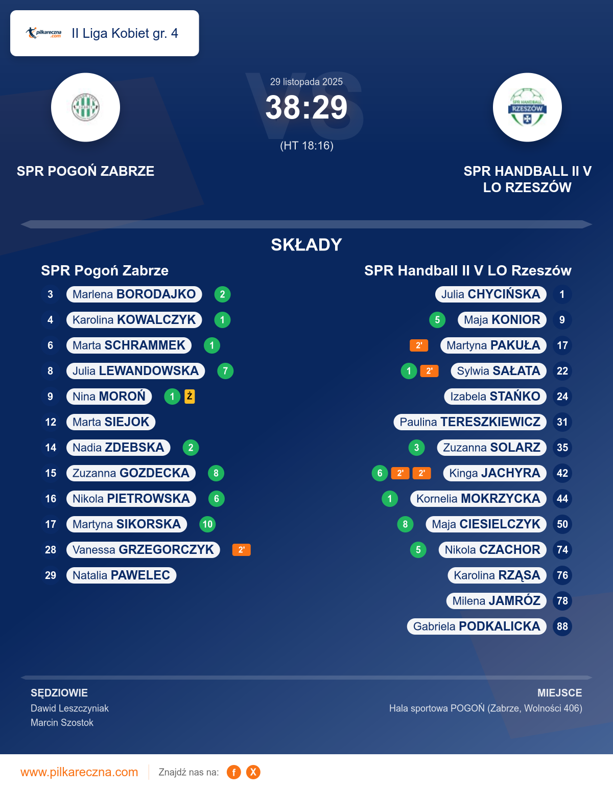 SPR Pogoń Zabrze 38–29 SPR Handball II V LO Rzeszów