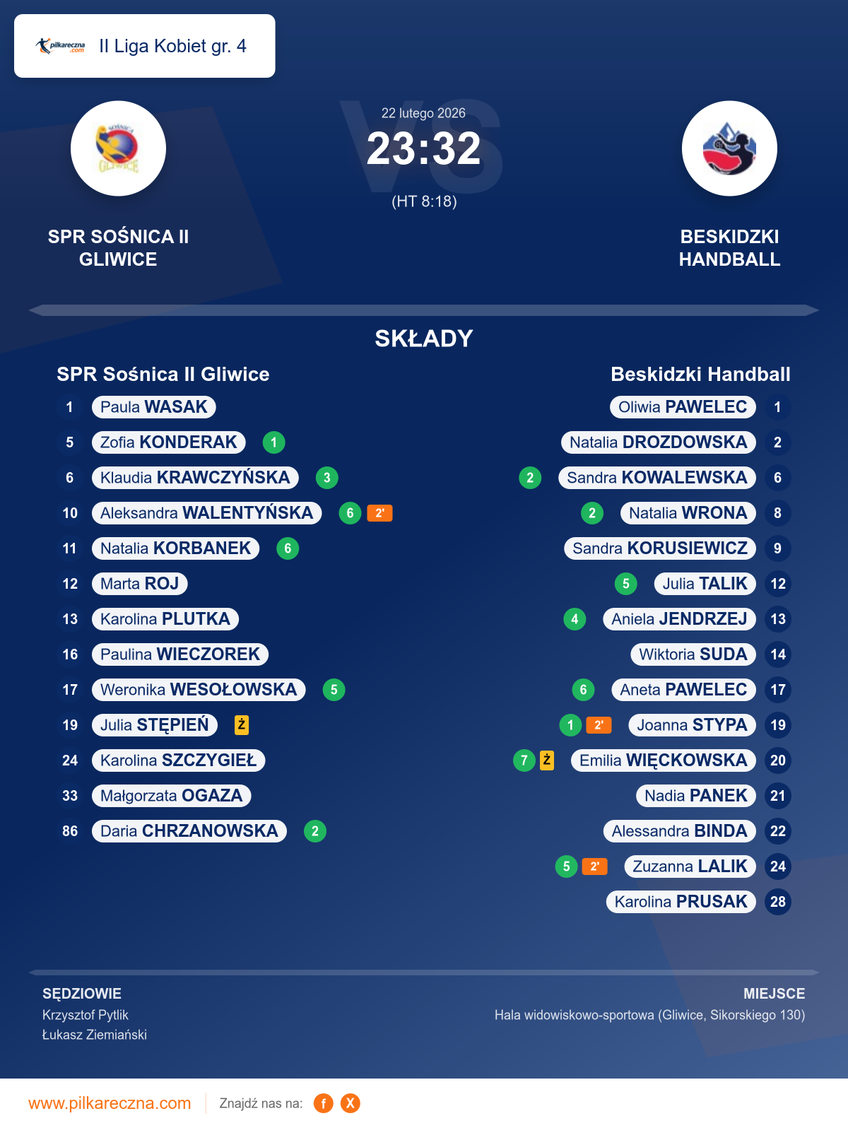 SPR Sośnica II Gliwice 23–32 Beskidzki Handball