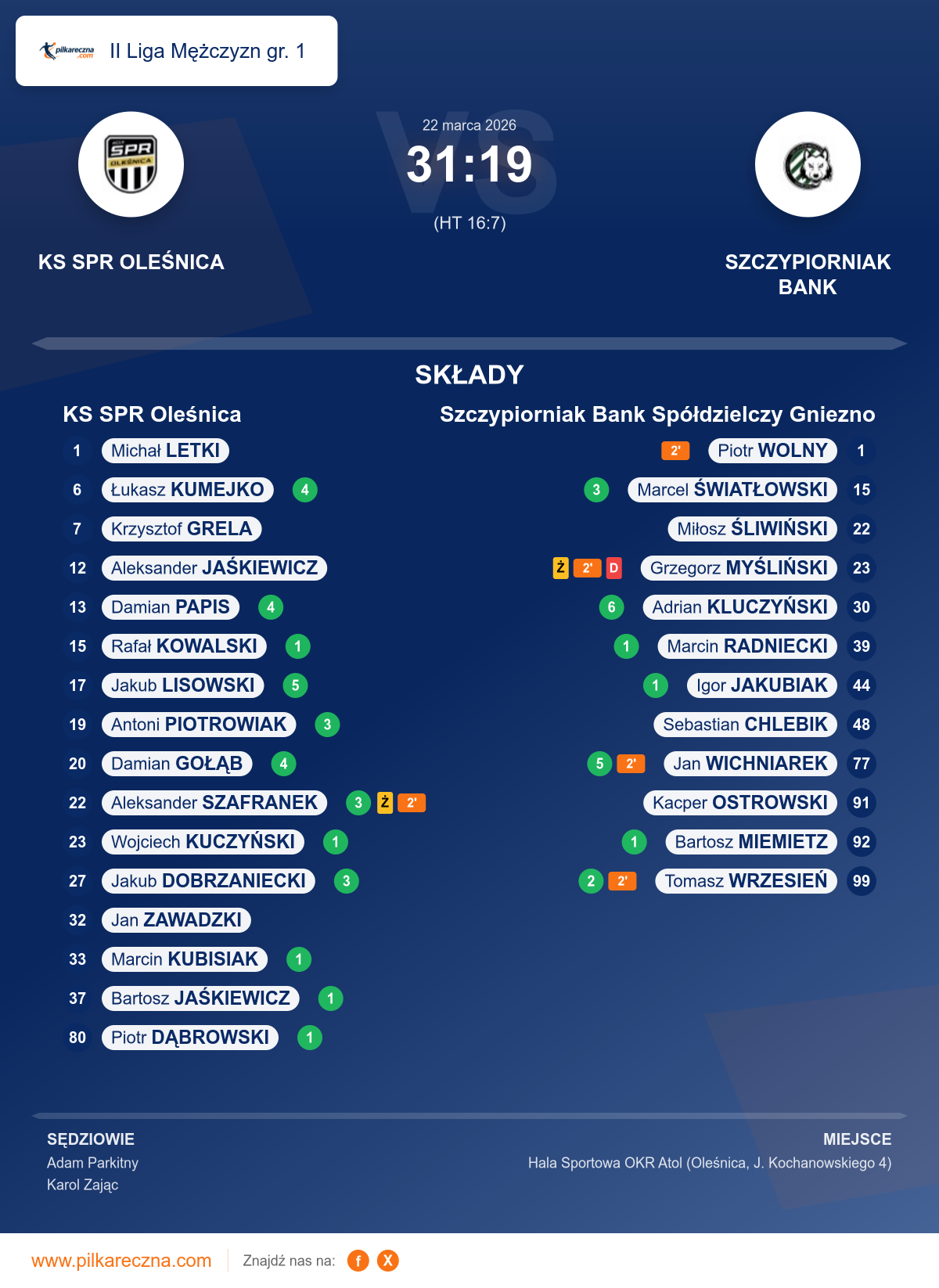 KS SPR Oleśnica 31–19 Szczypiorniak Bank Spółdzielczy Gniezno