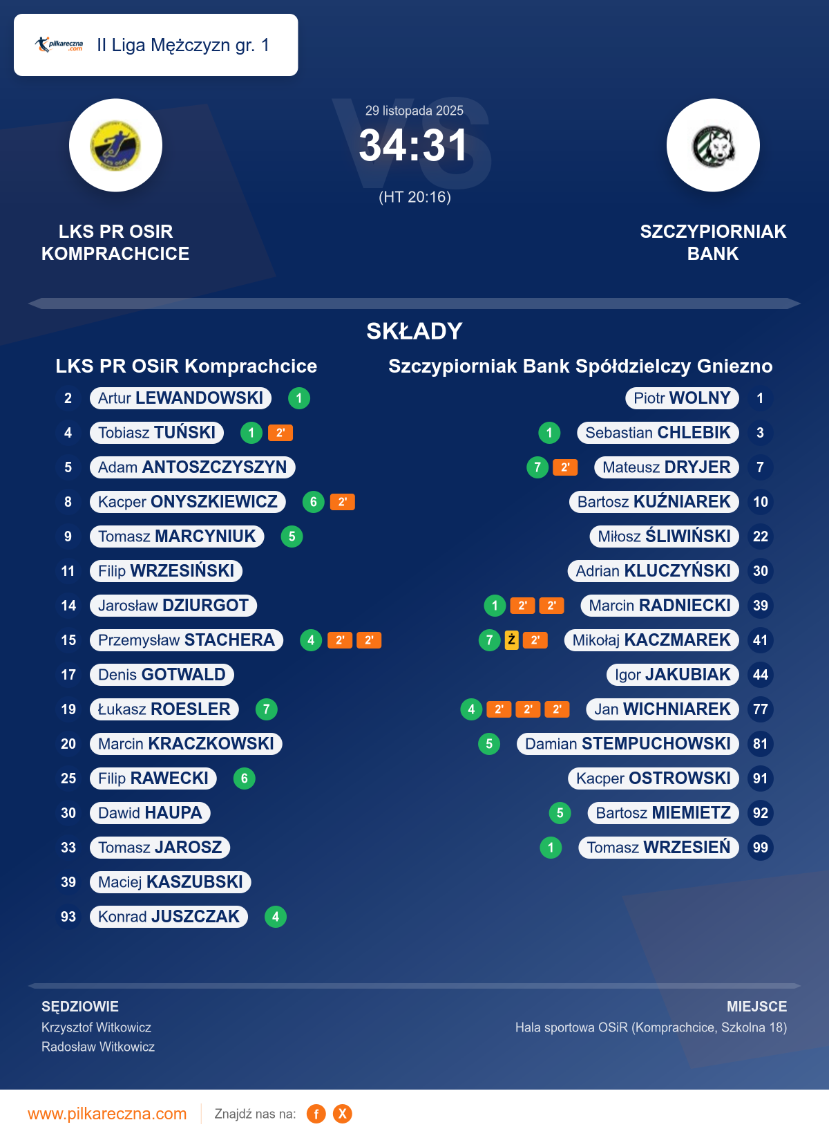 Sędziowali: Krzysztof Witkowicz, Radosław Witkowicz