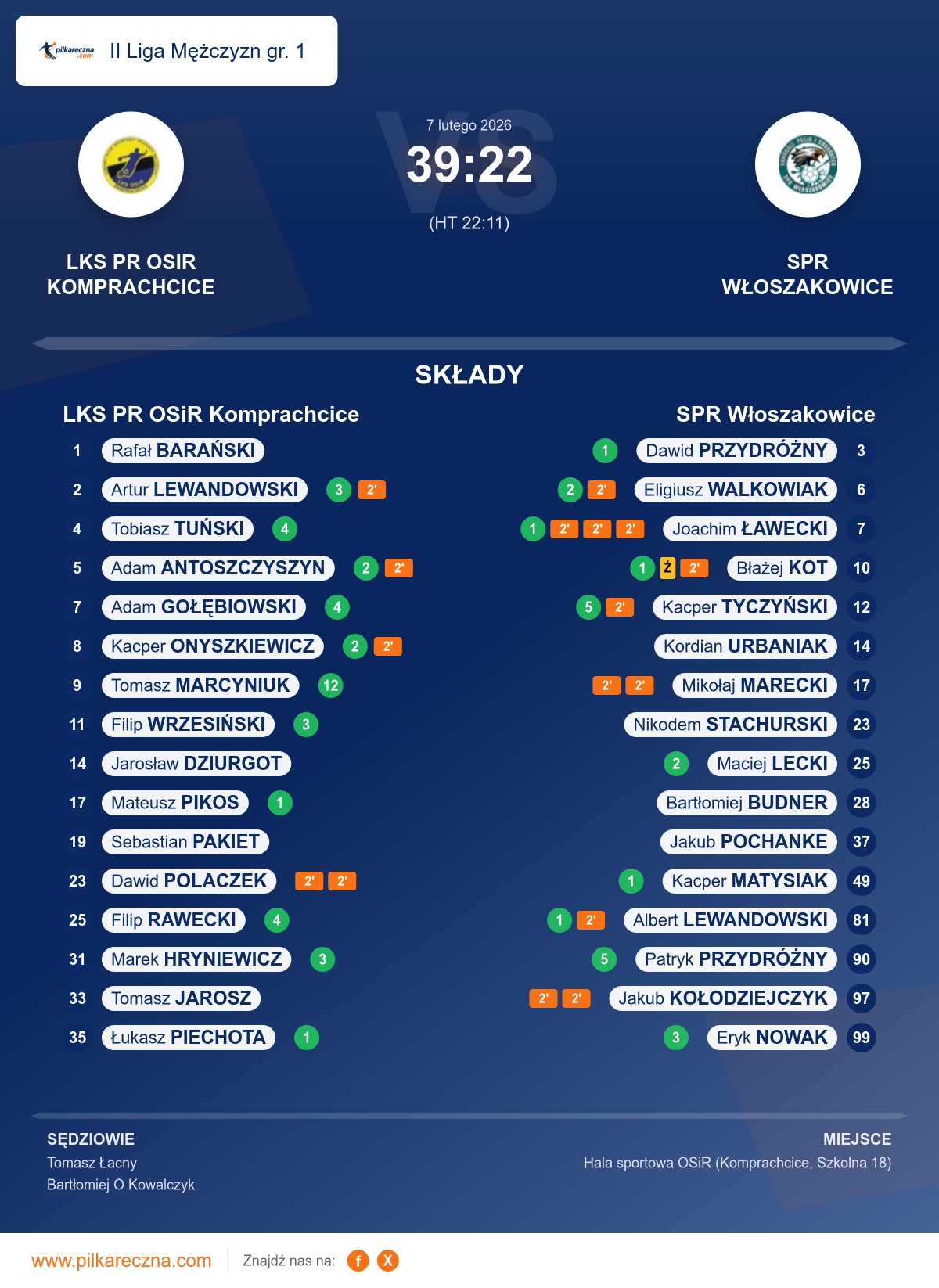 LKS PR OSiR Komprachcice 39–22 SPR Włoszakowice