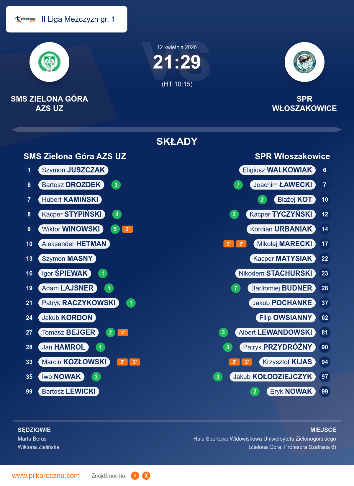 SMS Zielona Góra AZS UZ — SPR Włoszakowice